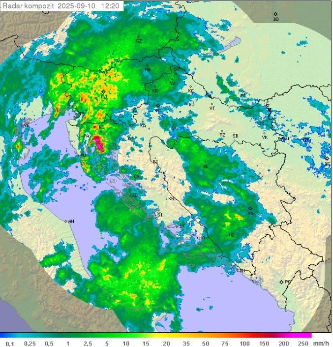 - U ovom trenutku DHMZ podigao je najviše upozorenje na vrlo opasne vremenske uvjete, prvenstveno zbog velikih količina oborina, za čitavo jadransko područje. Fokus je obala, gdje je moguće i preko 100 litara kiše tijekom današnjeg dana. Kada govorimo o tolikoj količini kiše, tu je rizik od urbanih poplava. Srećom ovaj događaj neće trajati dugo, spuštat će se sa sjevera prema jugu, rekao je Güttler.