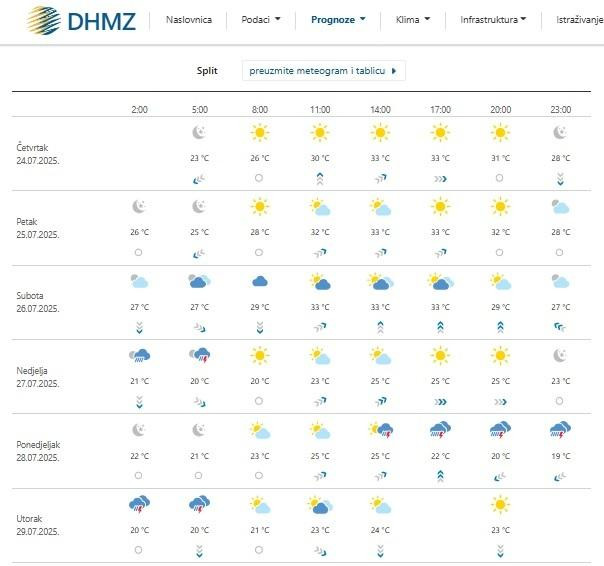 DHMZ za petak diljem kopnenog područja najavljuje vruće te mnogima teško i sparno vrijeme, uz rijetku povremenu kišu, uglavnom u obliku pljuskova, koje može pratiti i grmljavina.