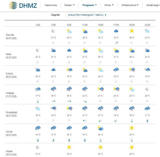 Ilustracija i prognoza DHMZ-a za temperature u Zagrebu