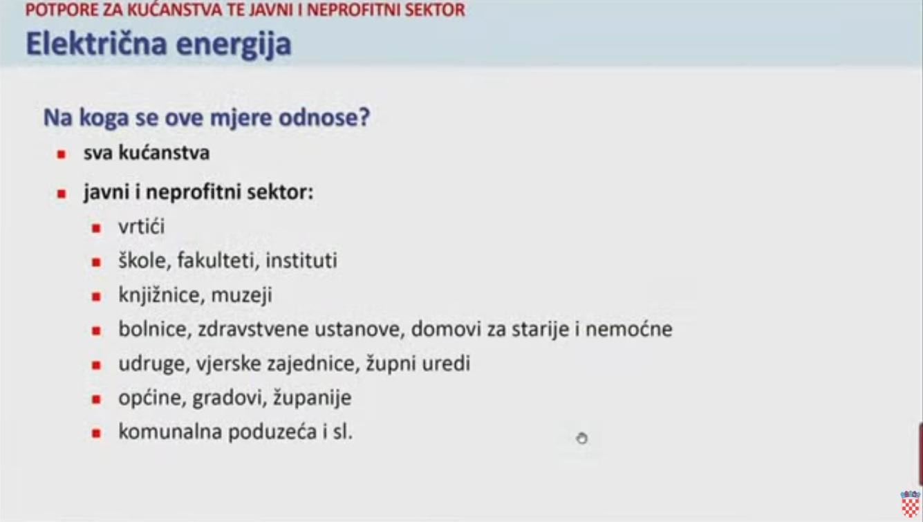 Te mjere se odnose na sva kućanstva, kao i na javni i neprofitni sektor, kao što su vrtići, škole, domovi za starije i nemoćne, vjerske zajednice itd.