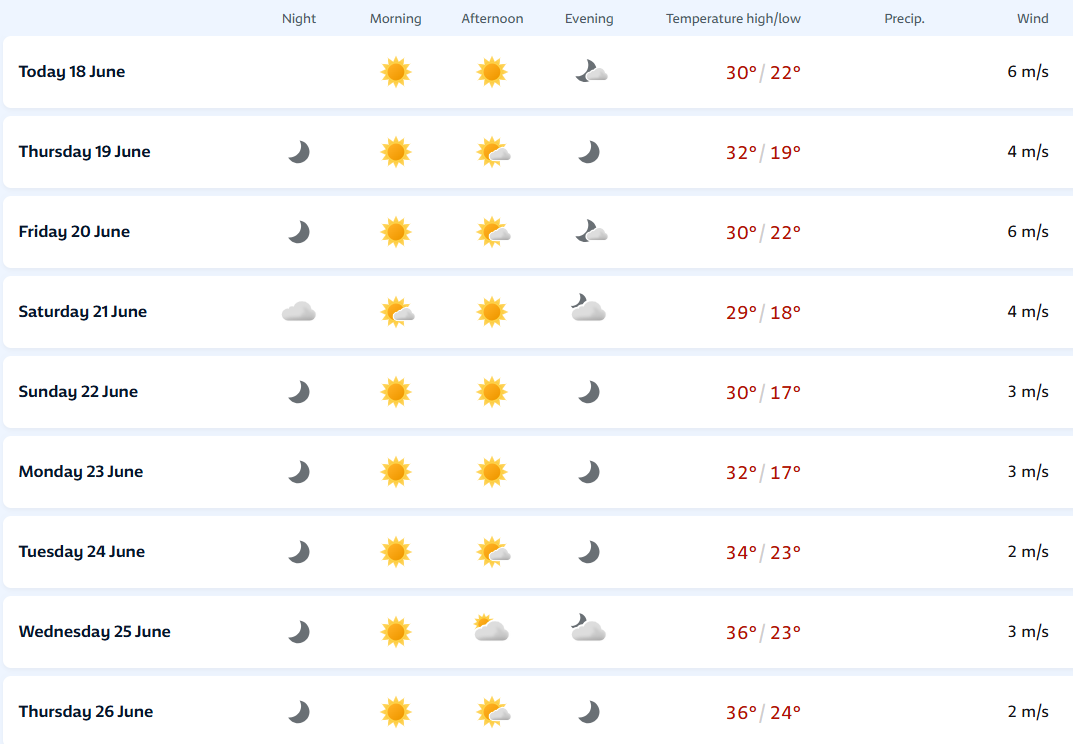 Na splitskom će se području zadržati sunčano i vrlo toplo vrijeme, a vikend će biti topliji nego u kontinentalnom dijelu zemlje. Do kraja ovog tjedna možemo očekivati dnevne temperature između 30 i 32 stupnja, a slično će se nastaviti do utorka.