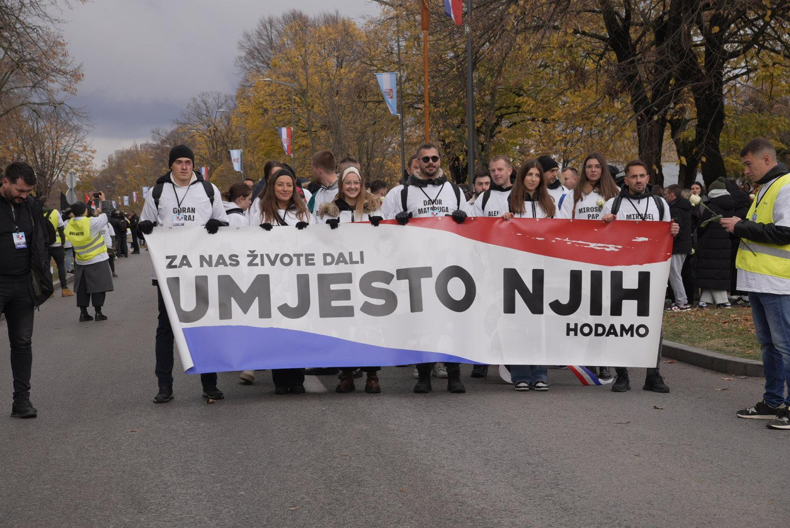 Prije samih branitelja u koloni se nalaze mladi odjeveni u majice s imenima ubijenih i nestalih hrvatskih branitelja Vukovara. Jedna od njih je i mlada Vinkovčanka Karla Štimac.