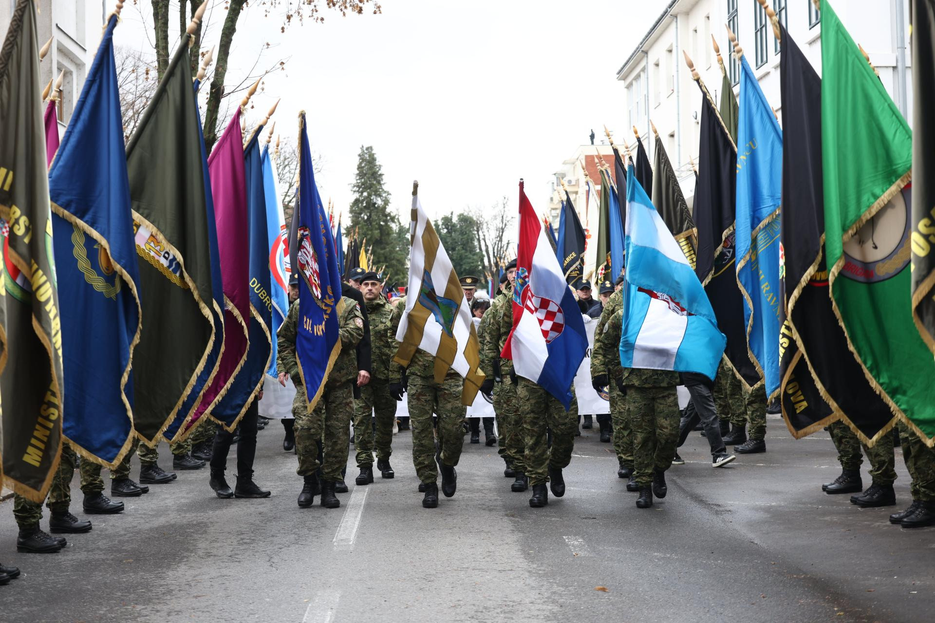 Kolonu iz kruga bolnice predvode hrvatski branitelji sa članovima obitelji poginulih, nestalih, ubijenih, nasilno odvedenih i umrlih branitelja na čelu s braniteljicama Vukovara.