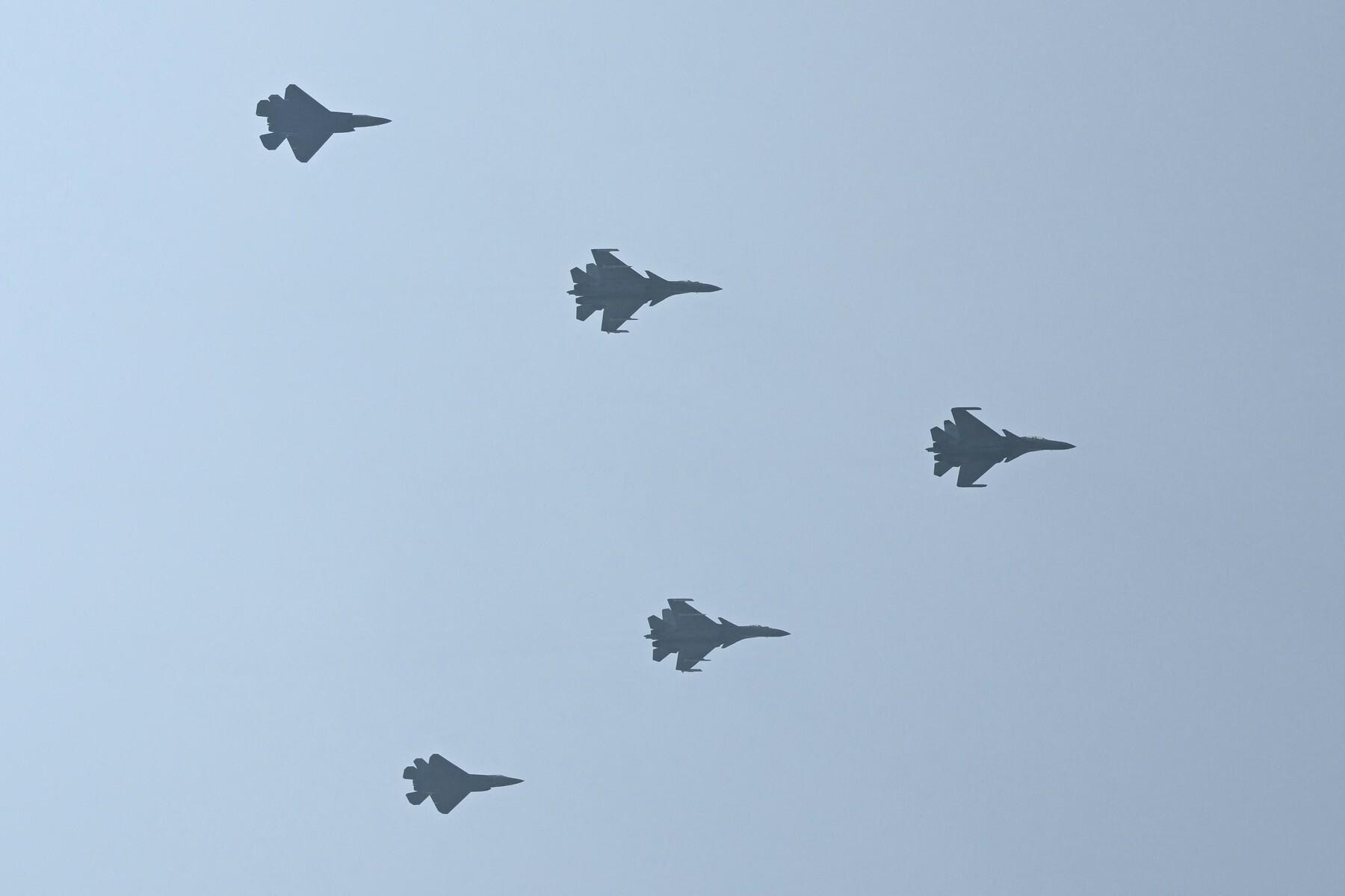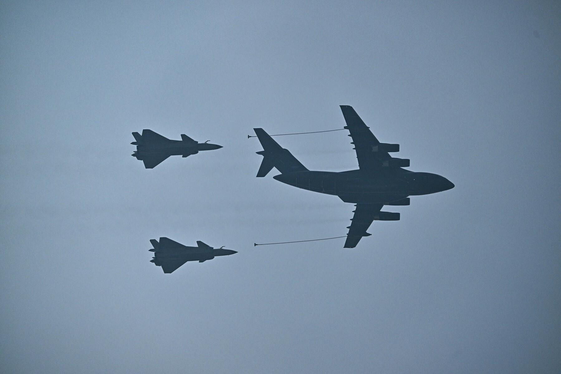 Parada je otkrila i novu generaciju borbenih zrakoplova. Među njima se isticao J-35, stealth lovac namijenjen nosačima zrakoplova, koji označava kineski iskorak s obalne na dalekosežnu pomorsku obranu. Uz njega su bili modernizirani modeli J-15, dvosjedna verzija J-20 koja može koordinirati s dronovima te novi pomorski bombarder H-6J opremljen nadzvučnim projektilima. Zahvaljujući tankerima YY-20, kineski bombarderi sada mogu letjeti i napadati na većim udaljenostima.