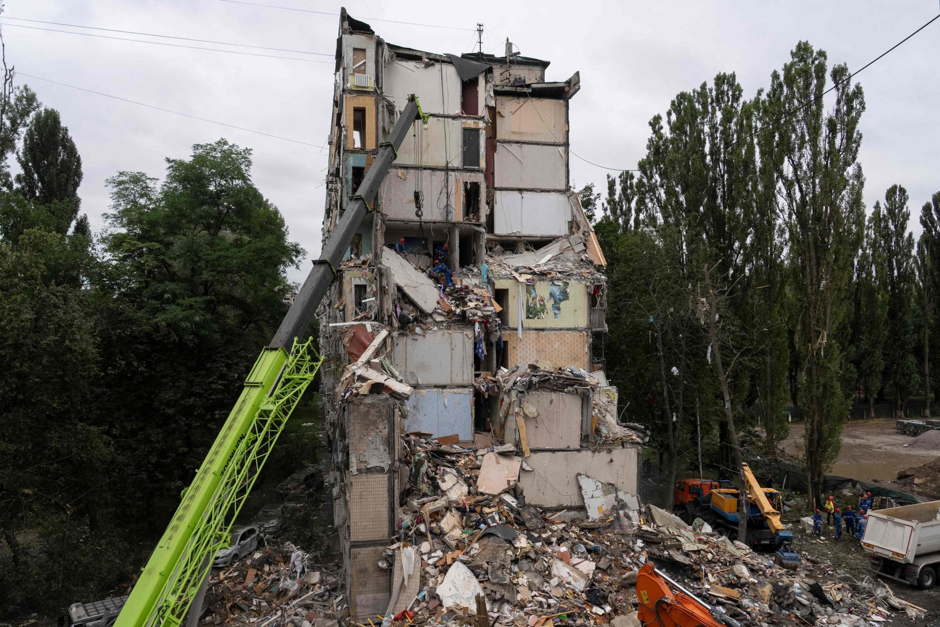 Načelnik vojne uprave grada Timur Tkačenko rekao je da je tijekom noćnog napada raketa pogodila višekatnicu i da bi još ljudi moglo biti zarobljeno pod ruševinama.