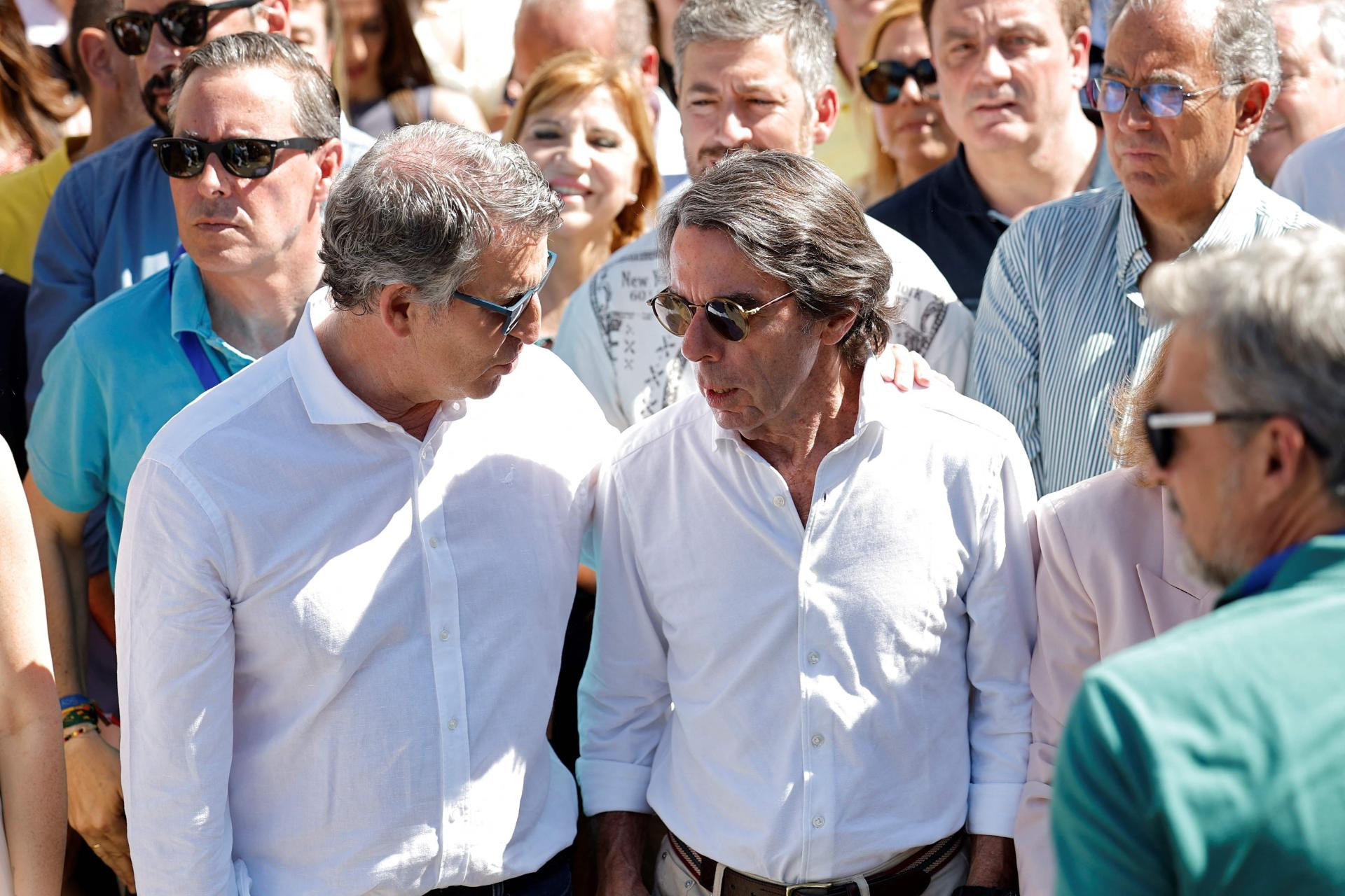 "Pokorite se demokraciji - raspišite izbore", apelirao je predsjednik PP-a Alberto Nunez Feijóo na skupu pod sloganom "Mafija ili demokracija".