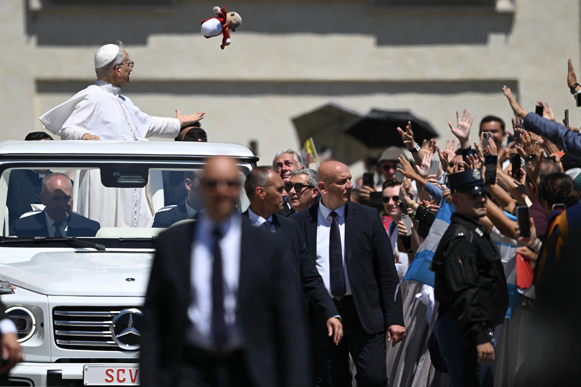 Papa Lav XIV. uhvatio je plišanu lutkicu koju mu je bacio netko od okupljenih dok je napuštao Trg svetog Petra u papamobilu, nakon što je sudjelovao na tradicionalnoj općoj audijenciji u Vatikanu.
