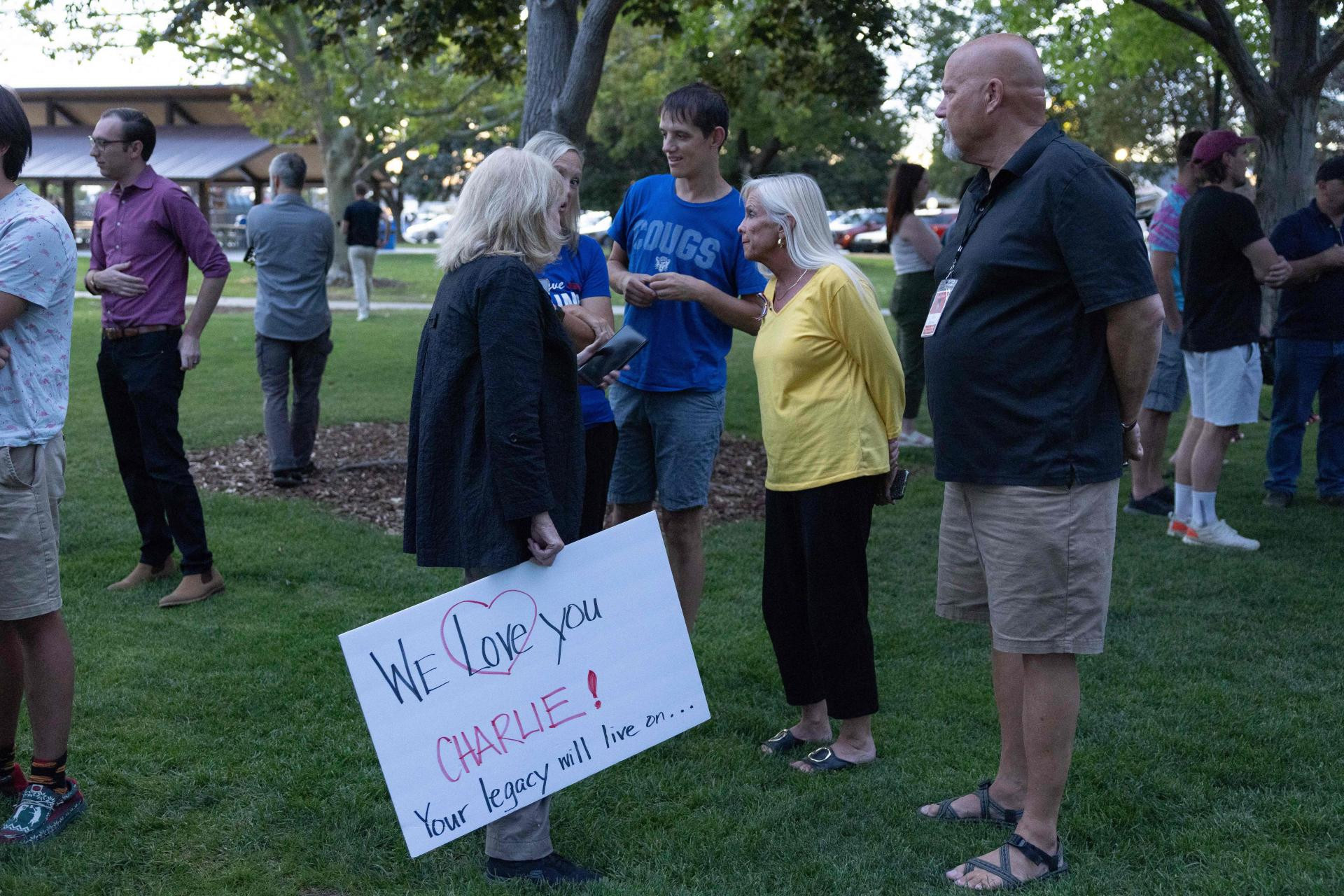 U parku Orem City Center u Utahu, nedaleko od sveučilišnog kampusa gdje je Kirk ubijen, okupile su se mase ljudi, paleći svijeće i mašući zastavama kao način odavanja počasti.