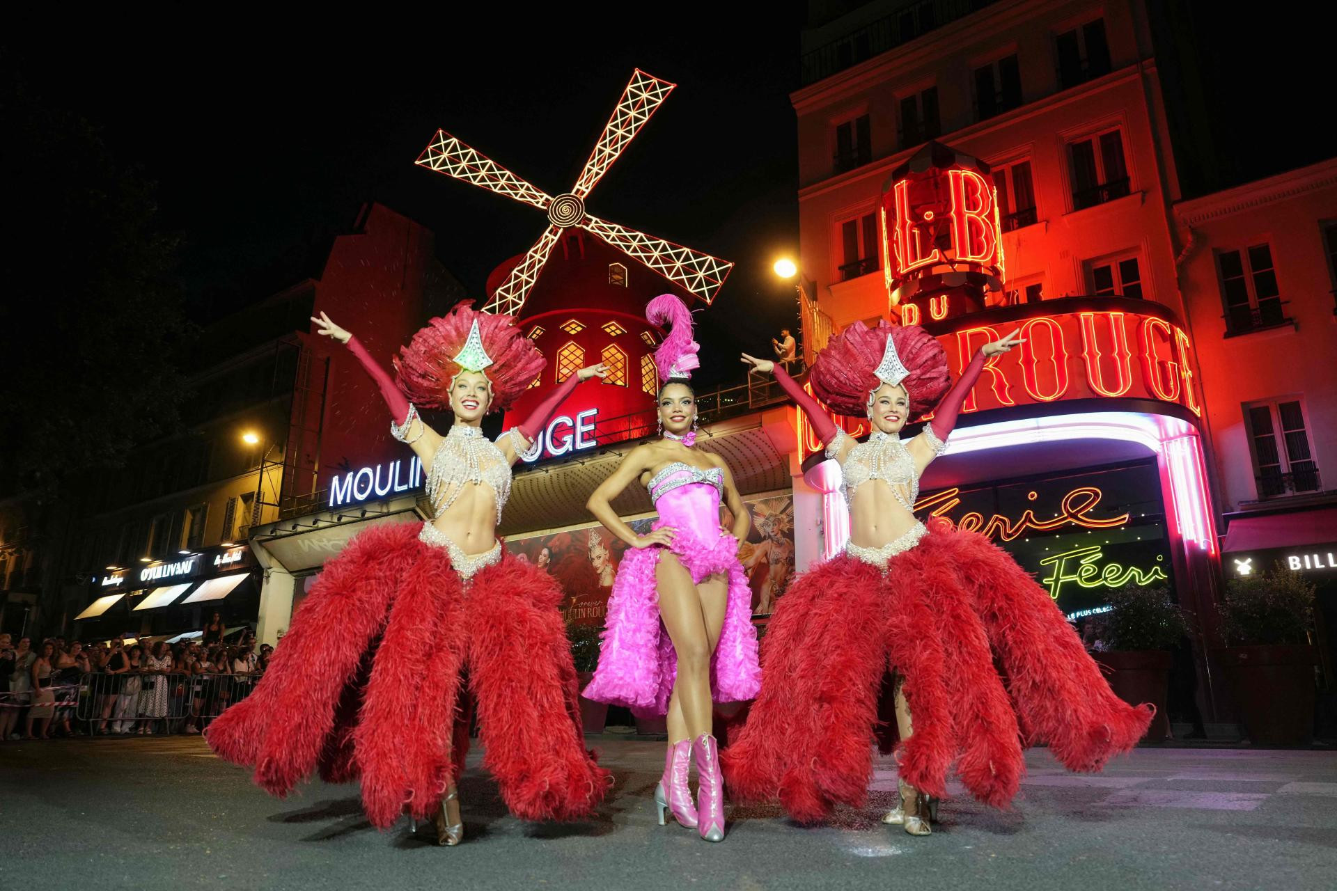 Za tu priliku, trupa Moulin Rougea nastupila je ispred zgrade, a nekoliko stotina promatrača došlo je svjedočiti tom događaju.