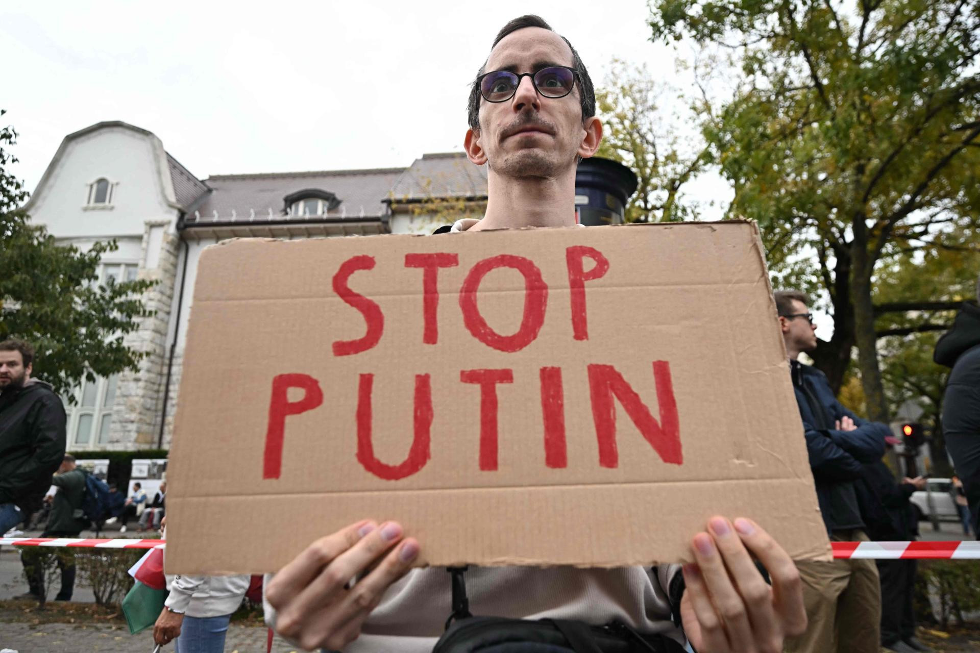 Nekoliko osoba u gomili pjevalo je "Rusi, idite kući", izvijestio je novinar dpa.