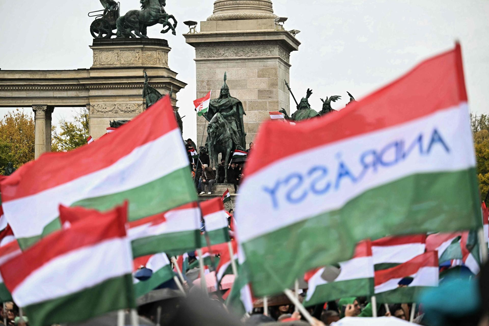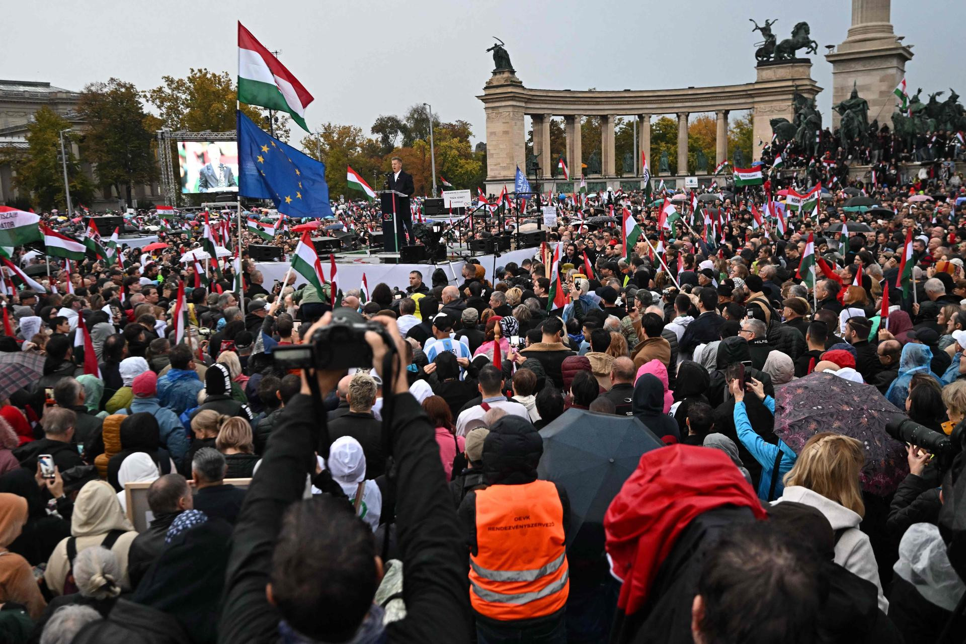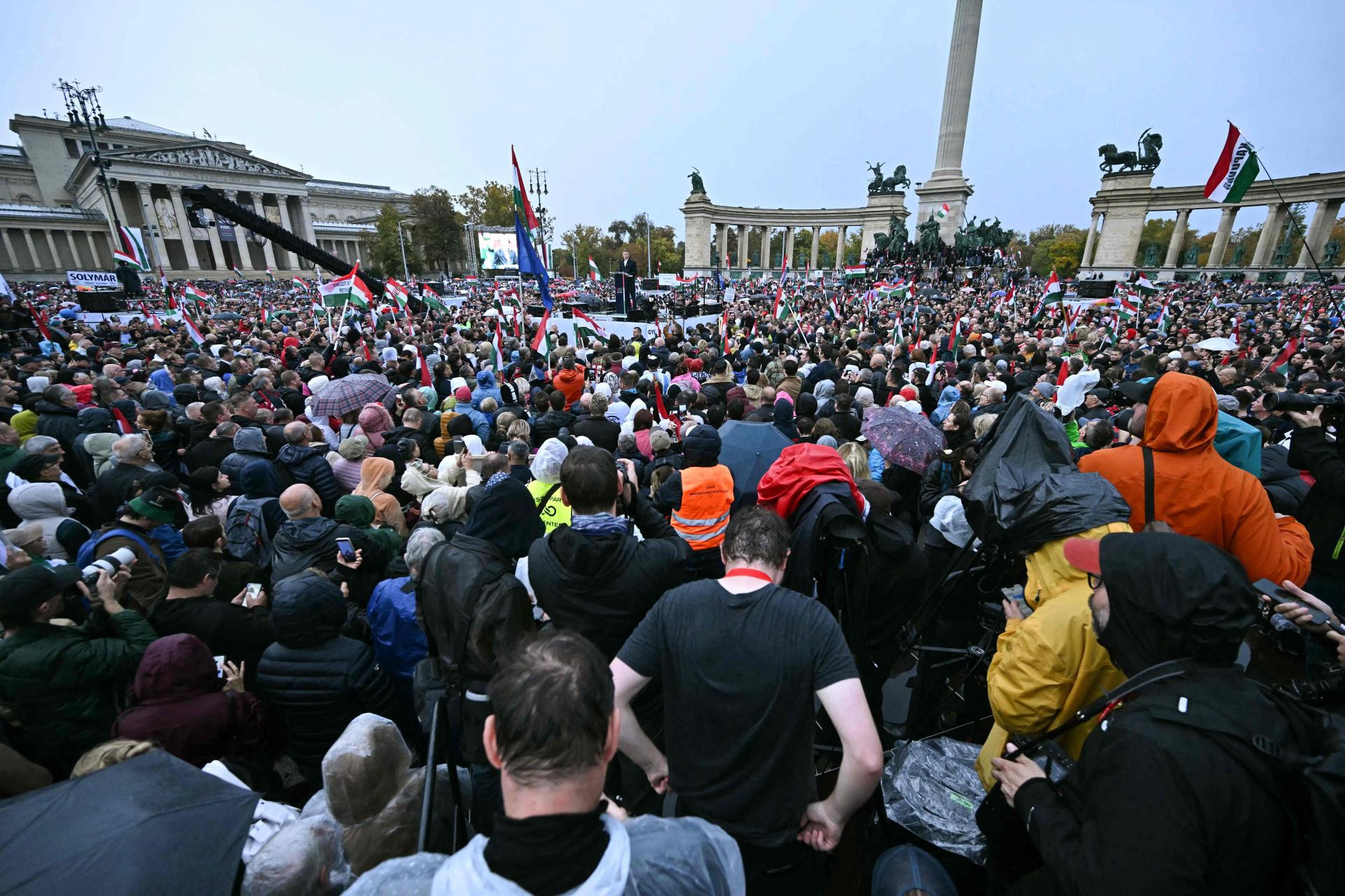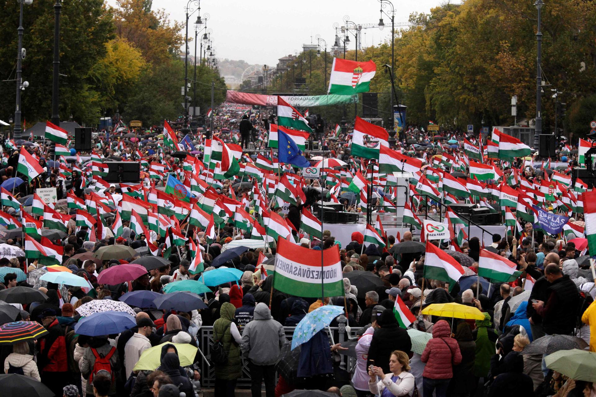 Deseci tisuća Mađara okupili su se na pljusku u četvrtak kako bi podržali poziv oporbenog političara Petera Magyara na "nacionalni marš" kroz Budimpeštu.