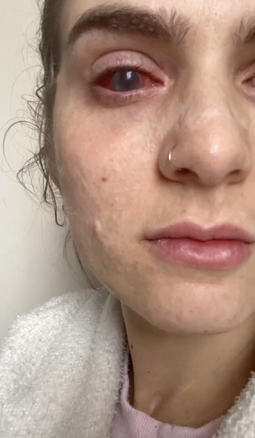 Oštećenje rožnice zahtijevalo je dvije transplantacije; a kod druge su joj liječnici morali zašiti kapke kako bi zaštitili oči od daljnjih oštećenja.