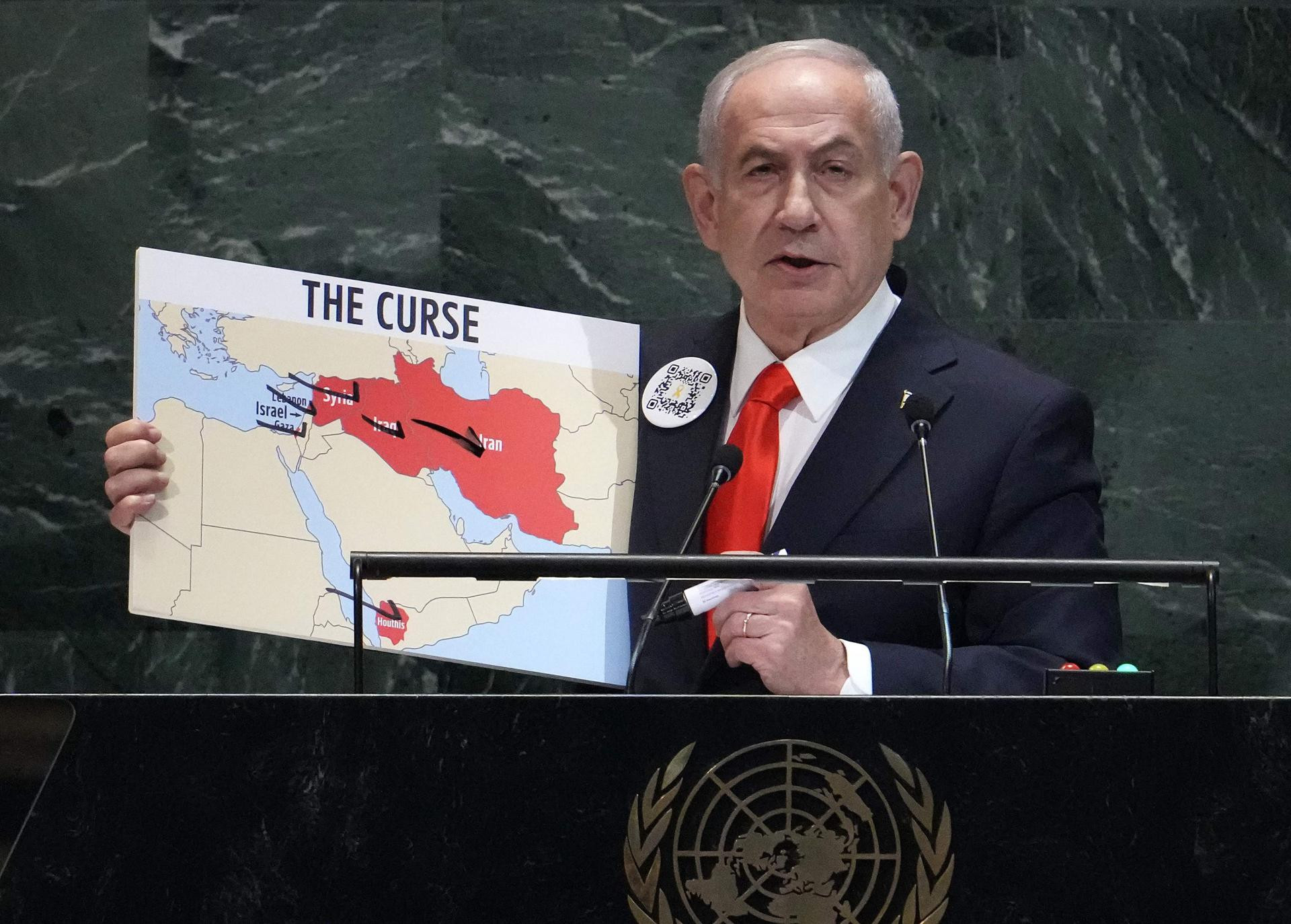 "Prošle godine stajao sam za ovim podijem i pokazao ovu kartu. Ona prikazuje prokletstvo iranske terorističke osi. Ova os prijeti miru cijeloga svijeta."