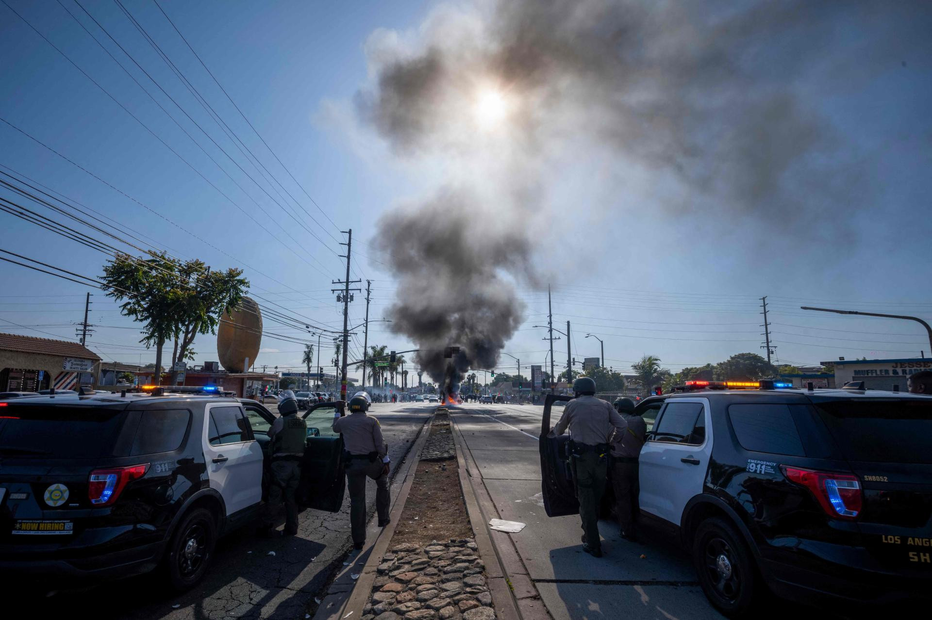 Ured šerifa Los Angelesa uhitio je u subotu tri osobe zbog sumnje na napad na policajca. Zamjenici šerifa upotrijebili su "nesmrtonosnu silu" u Paramountu, rekla je zamjenica glasnogovornice Brenda Serna, ne iznoseći detalje o korištenim taktikama.