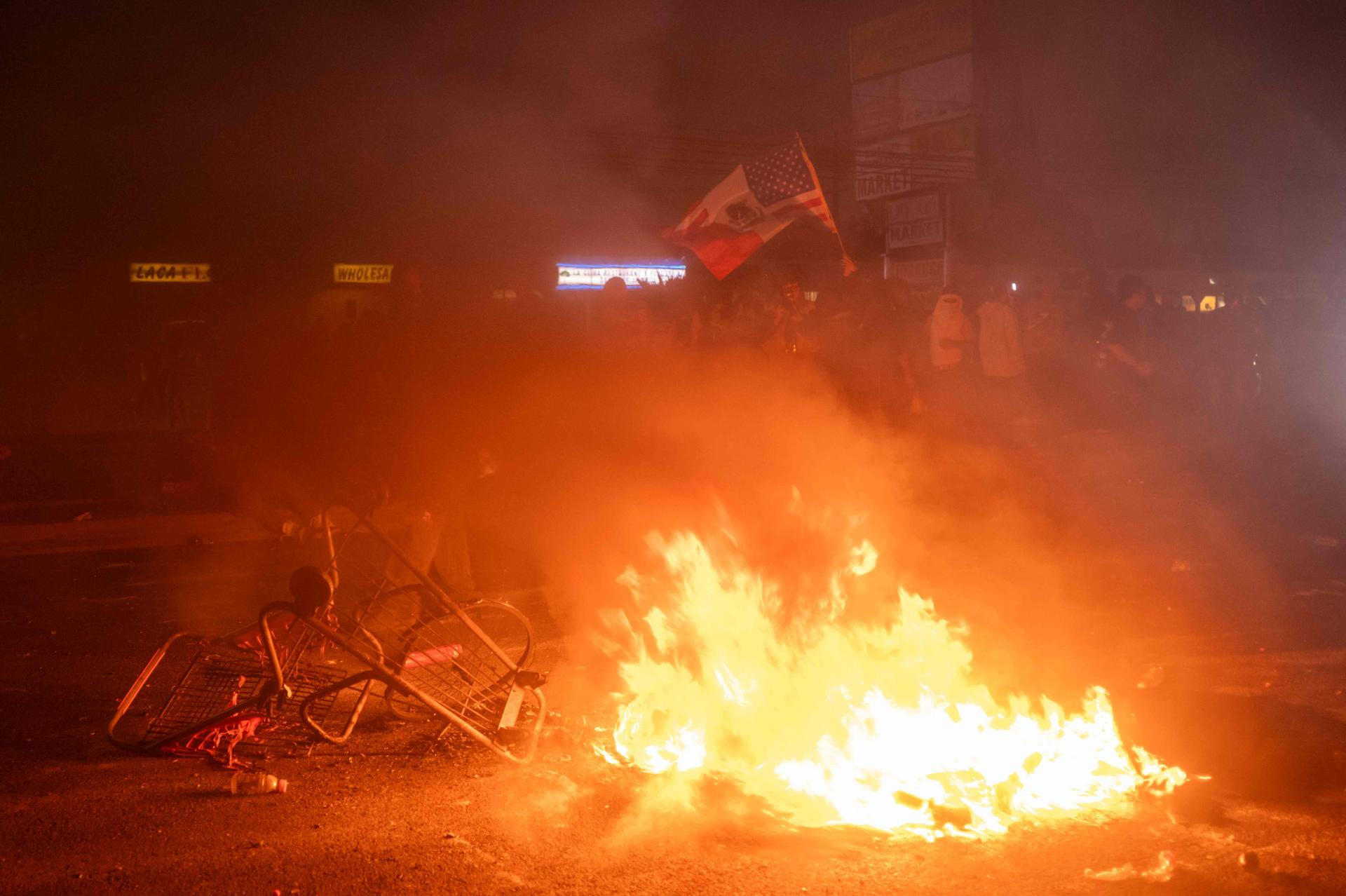 U Los Angelesu i dalje traju sukobi prosvjednika i policije. New York Times tvrdi da su sukobi eskalirali. Prosvjednici su navodno ispaljivai vatromet prema policiji, policija uzvraćala suzavcem. Više je osoba privedene, neke su ceste zatvorene.
