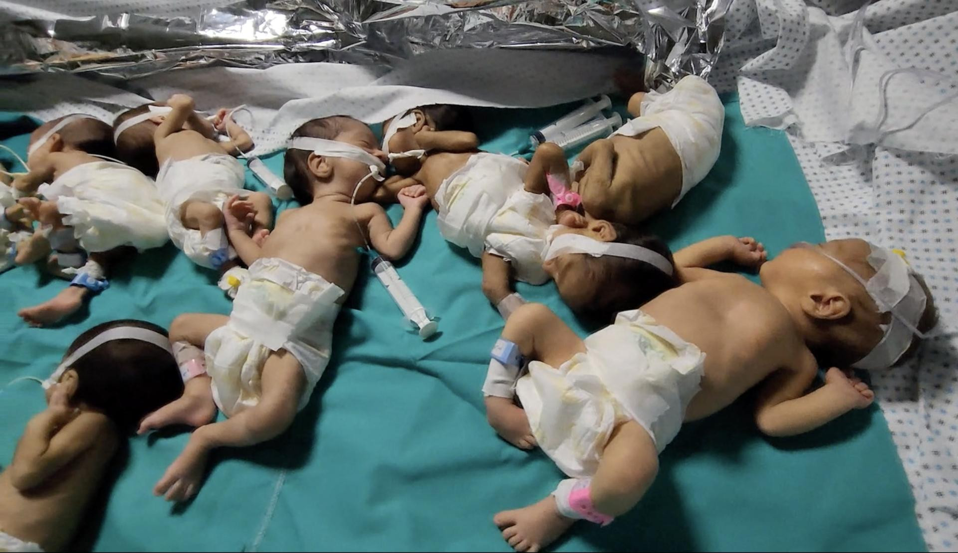 James Elder, glasnogovornik UNICEF-a, kaže kako se majke i bebe nižu na hodnicima bolnice Naser na jugu Pojasa Gaze i da prijevremeno rođene bebe moraju dijeliti maske s kisikom i krevete. Za to vrijeme, pedijatrijska oprema od životne važnosti zaglavljena je u bolnicama na sjeveru koje su evakuirane.