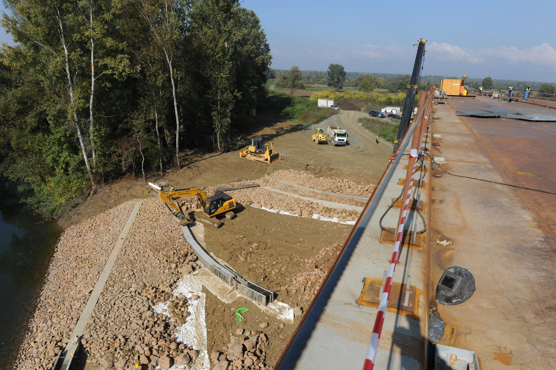 Na 18 stupova vijadukta Ričina izvedeno je oko 90 posto radova te se na njih sedam i naglavne grede stupova sada tehnikom naguravanja montiraju segmenti čelične rasponske konstrukcije objekta.