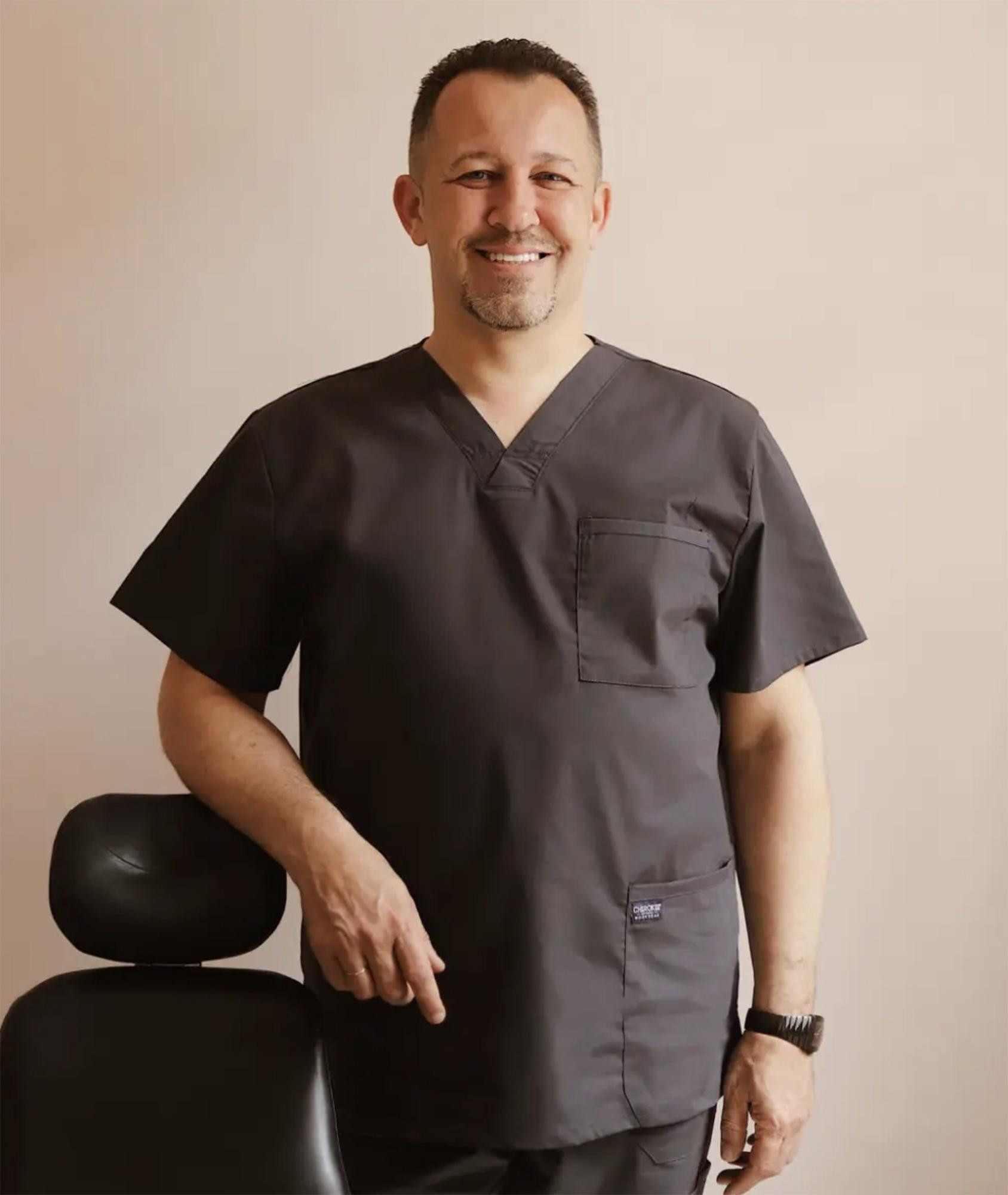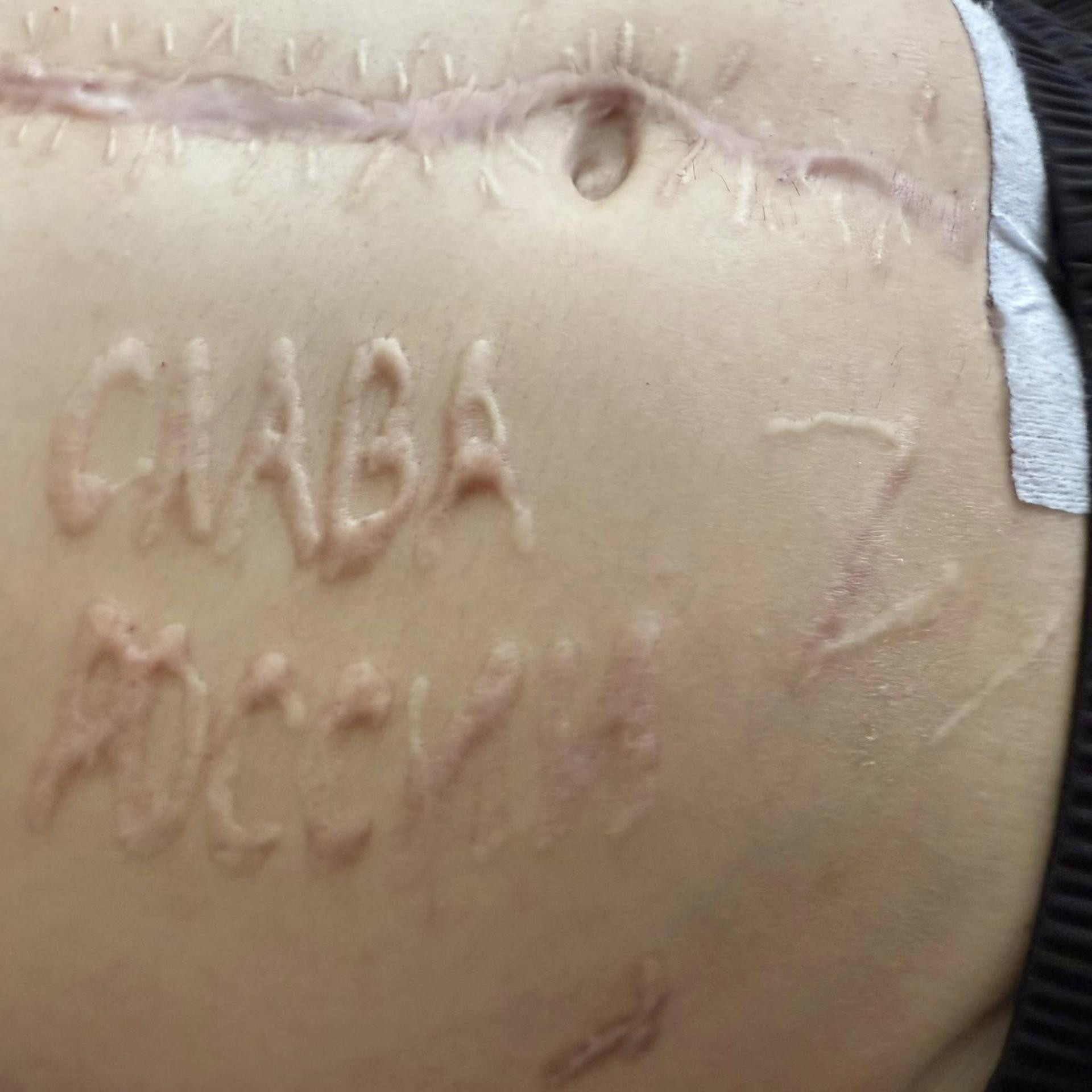 Njegov pacijent ima nekoliko rana – razne opekline, dugi rez od prsa do trbuha, spomenuti natpis na boku i slovo Z pored njega, koje je simbol ruskih snaga. Dermatolog je 2023. godine pomogao ukloniti svastiku s čela drugog zarobljenika, a vjeruje da može pomoći i trenutnom pacijentu. Ubrizgao mu je polinukleotide kako bi se potaknulo zacjeljivanje ožiljaka.