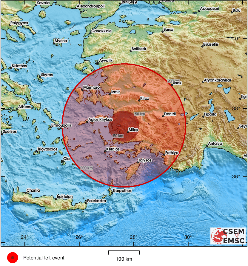 Potres se osjetio diljem juga Grčke, zapada Turske i obalnih područja uz Egejsko more.