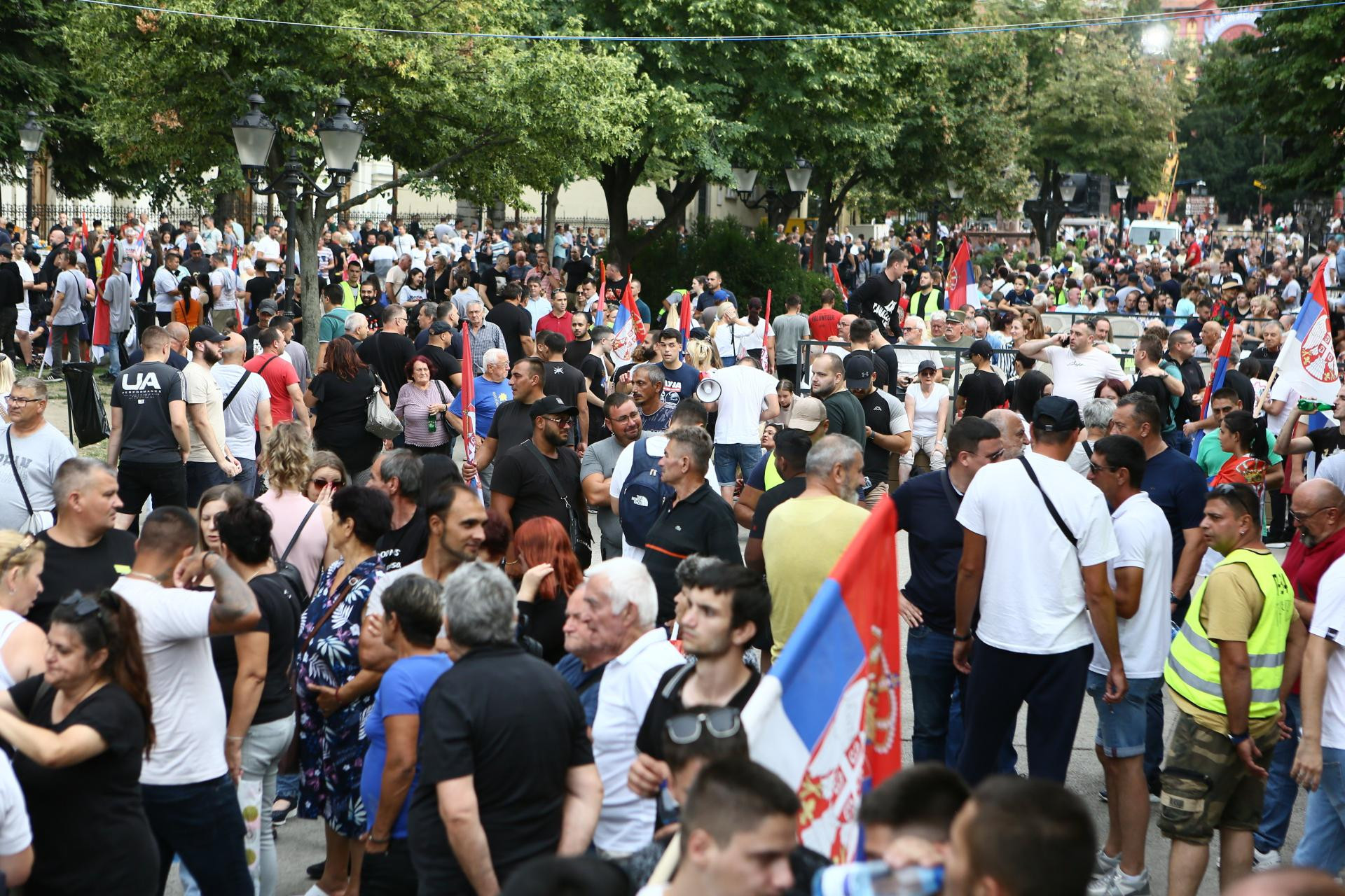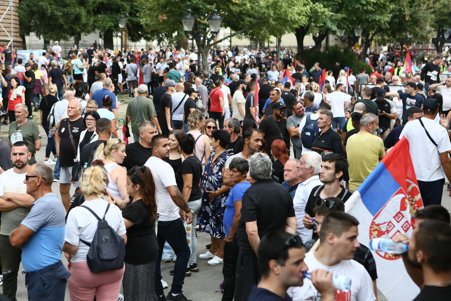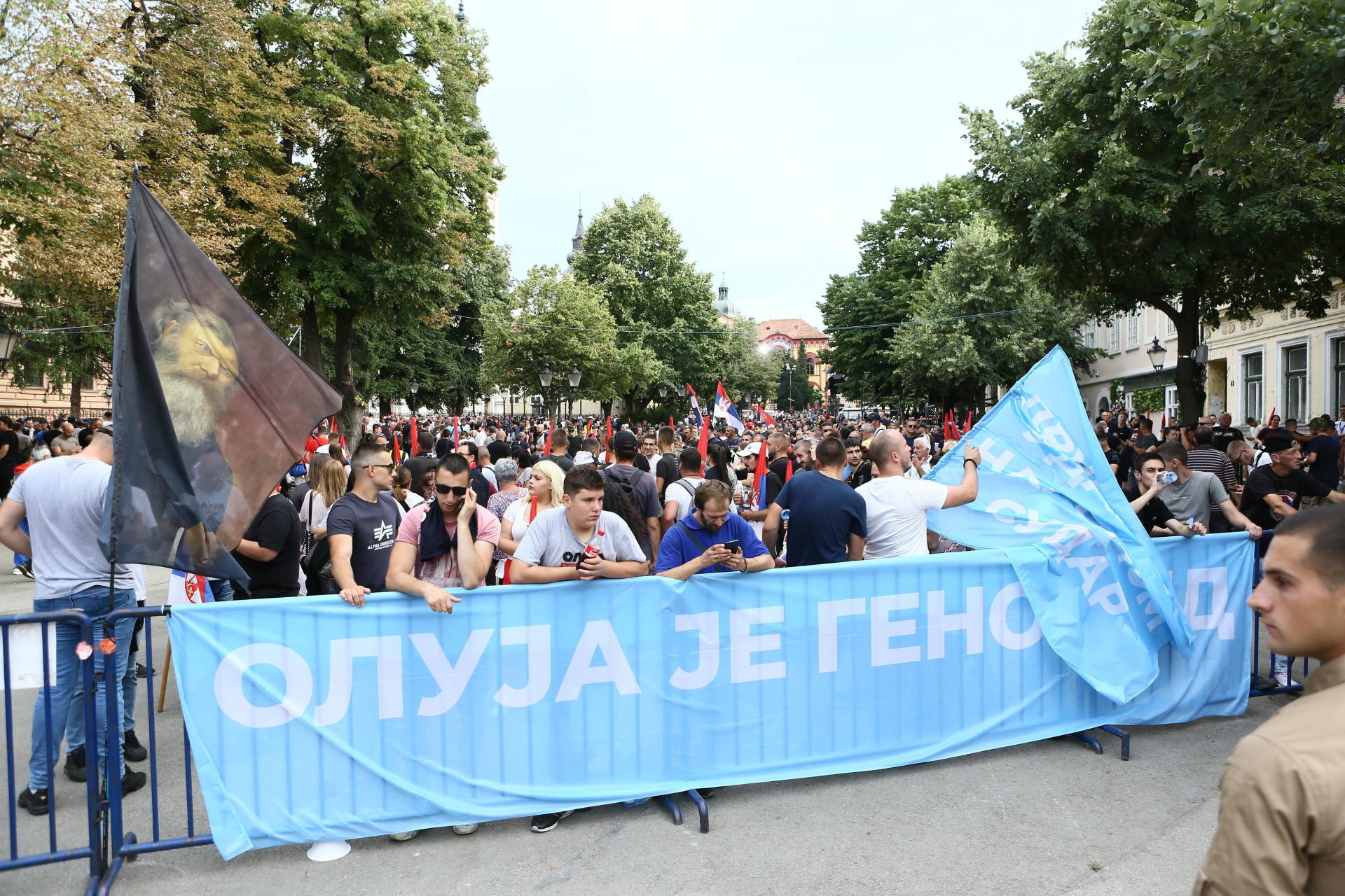 Tisuće ljudi okupile su se u nedjelju navečer u Sremskim Karlovcima u Srbiji na skupu kojim su obilježili ono što nazivaju "protjerivanjem Srba" iz Hrvatske u akciji "Oluji" 1995., koja se u Hrvatskoj obilježava kao Dan pobjede u ratu 1990-tih.