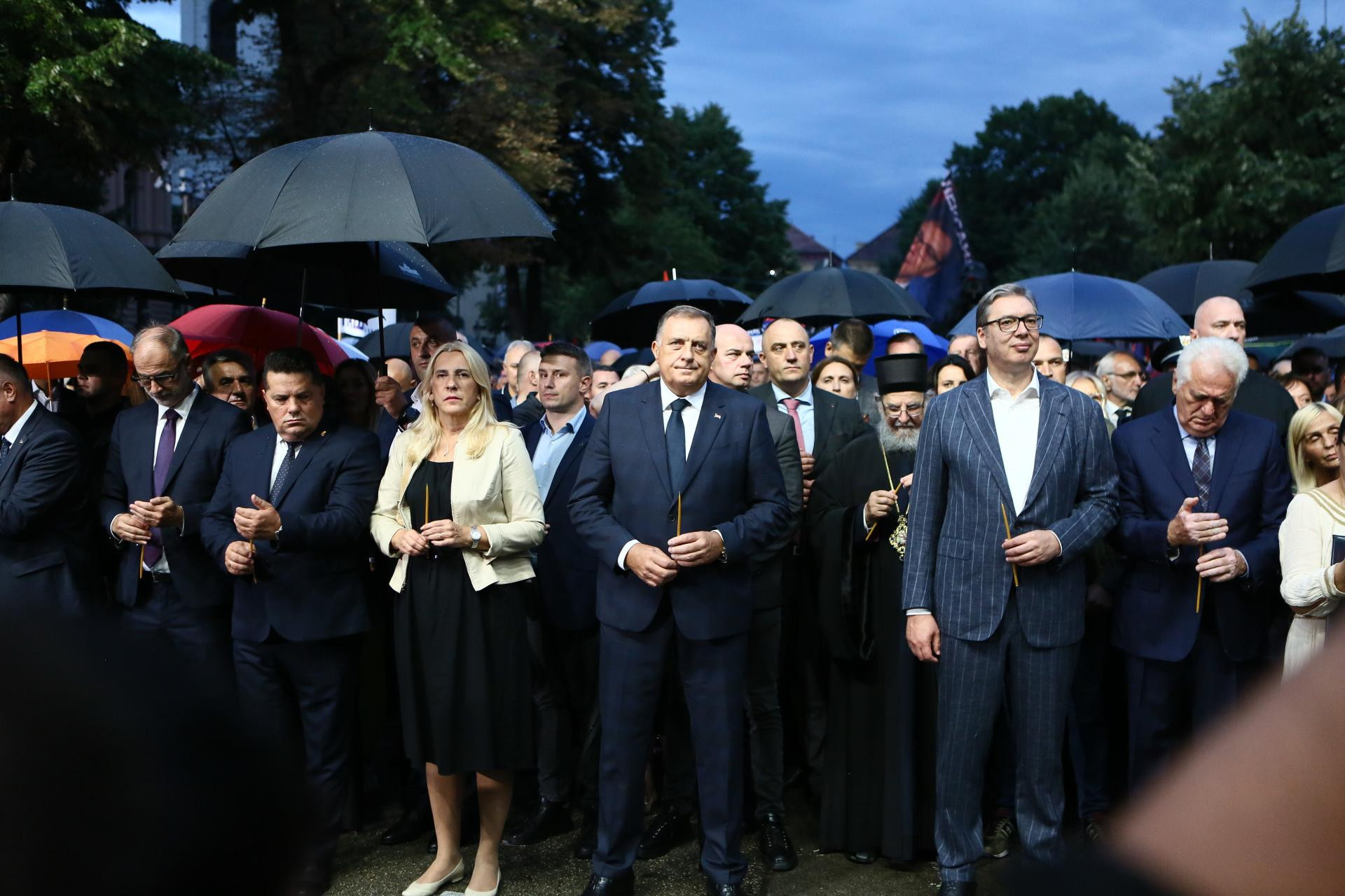 Na skupu koji organiziraju srbijanske vlasti čulo se da se stradale sunarodnjake ne smije zaboraviti, da će "Srbija čiuvati mir i stabilnost" i da "više nikad i nikome nijedna Oluja neće uspjeti".