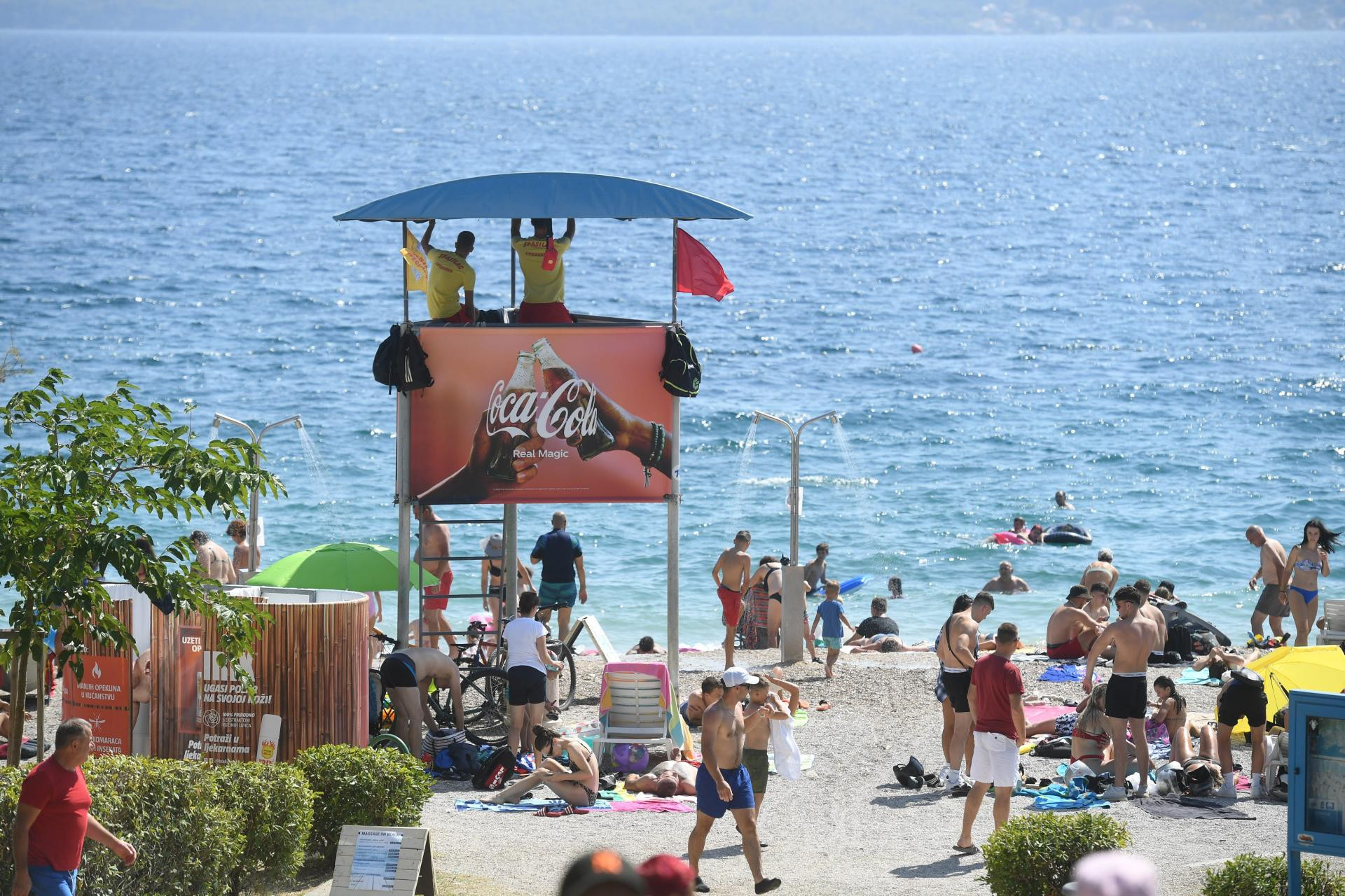 Napominje da je tijekom cijelog dana na plaži bila istaknuta žuta zastava zbog nemirnog mora.