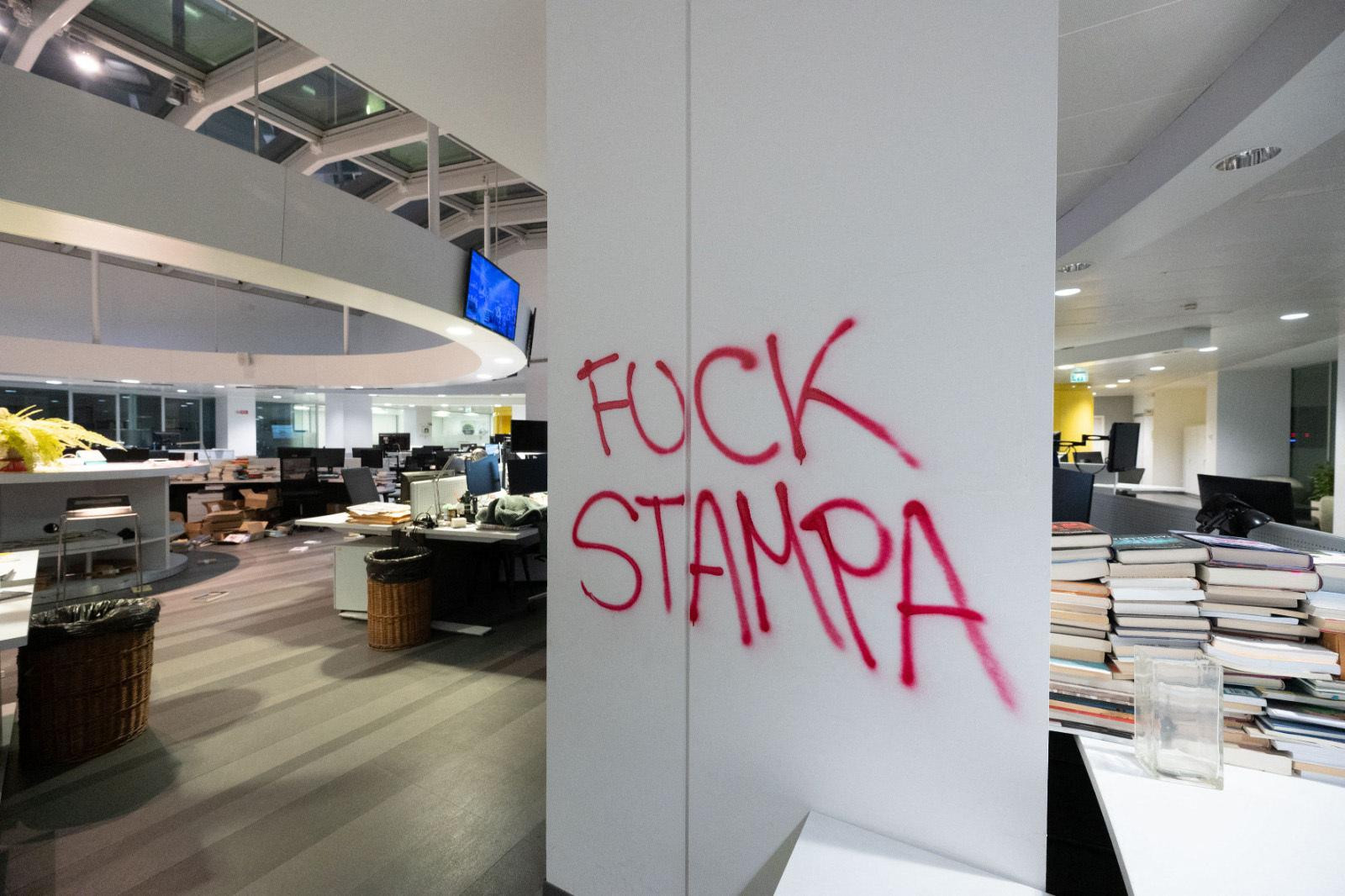 Kako prenosi dnevni list sa sjedištem u Torinu, oko stotinu ljudi koji su u petak sudjelovali u demonstracijama organiziranim protiv proračuna što ga je predložila vlada, odvojilo se od glavne povorke i provalilo u urede redakcije La Stampe. Zbog nacionalnog štrajka talijanskih novinara, koji se također održavao u petak, prostorije dnevnog lista bile su prazne.