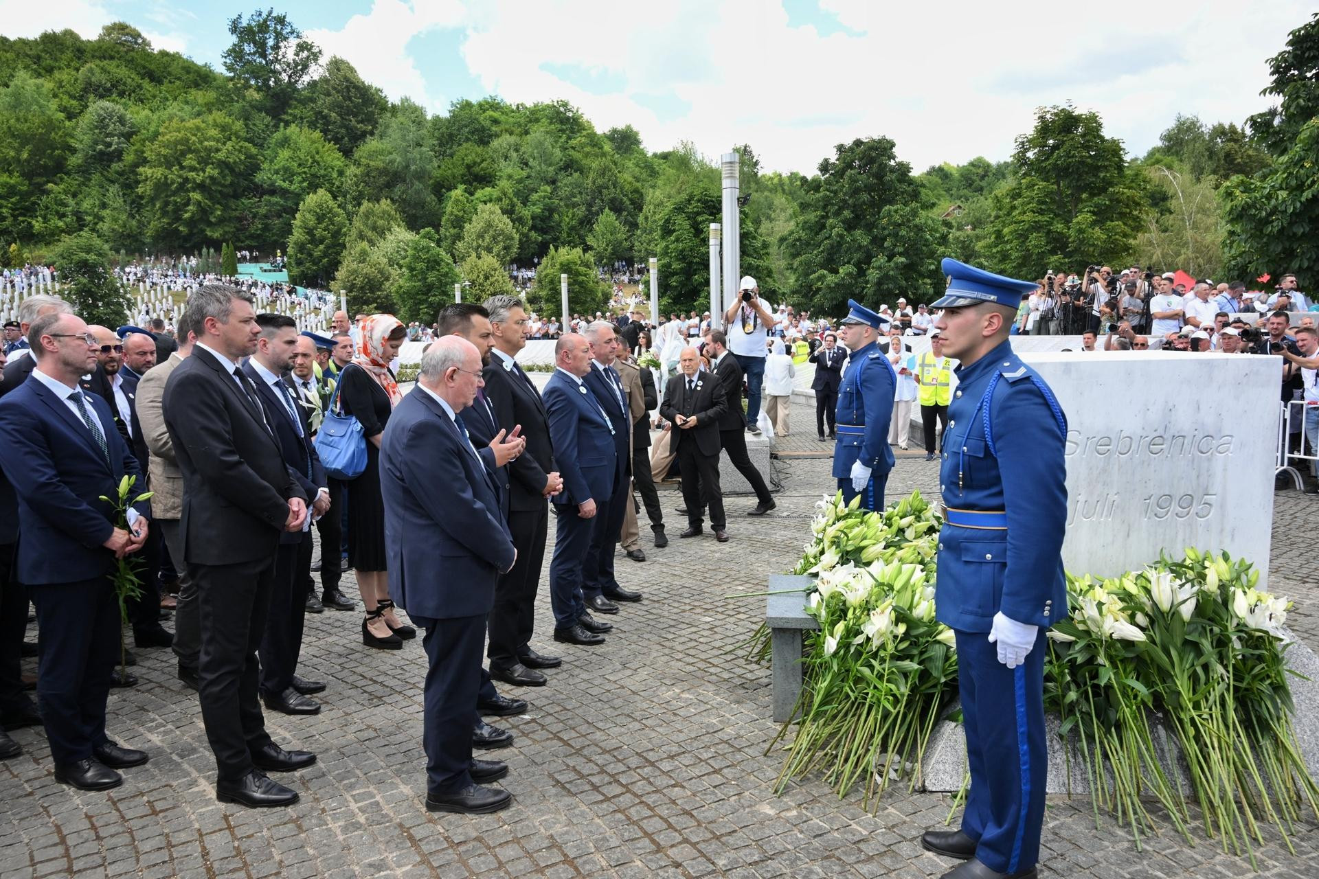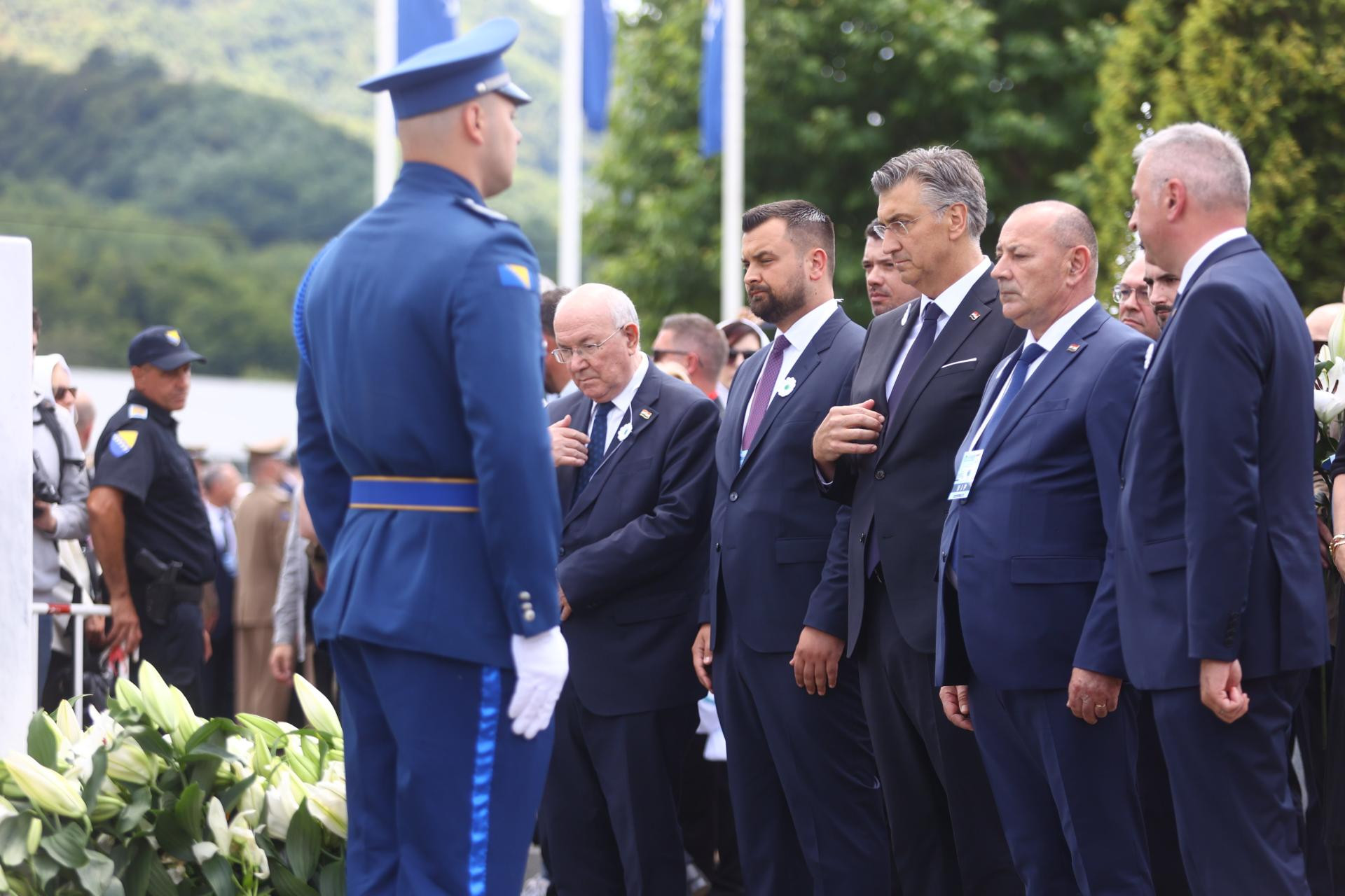 Premijer Andrej Plenković rekao je da su Hrvatska i BiH bile su žrtve agresije Miloševićeva režima i podsjetio da Hrvatska i danas traga za više od 1744 nestale osobe pa s dubokim poštovanjem gleda na one u BiH koji nose bol za svojim nestalima. "Srebrenica je više od mjesta stradanja, ona je simbol opomene. Ovdje je zlo dosegnulo svoju krajnju genocidnu formu", rekao je Plenković, dodajući da su zakazali međunarodni mehanizmi, ali i temeljna načela čovječnosti. Za genocid u Srebrenici do sada su osuđene 54 osobe na 781 godinu i pet na doživotnu kaznu zatvora, uključujući Ratka Mladića i Radovana Karadžića.
