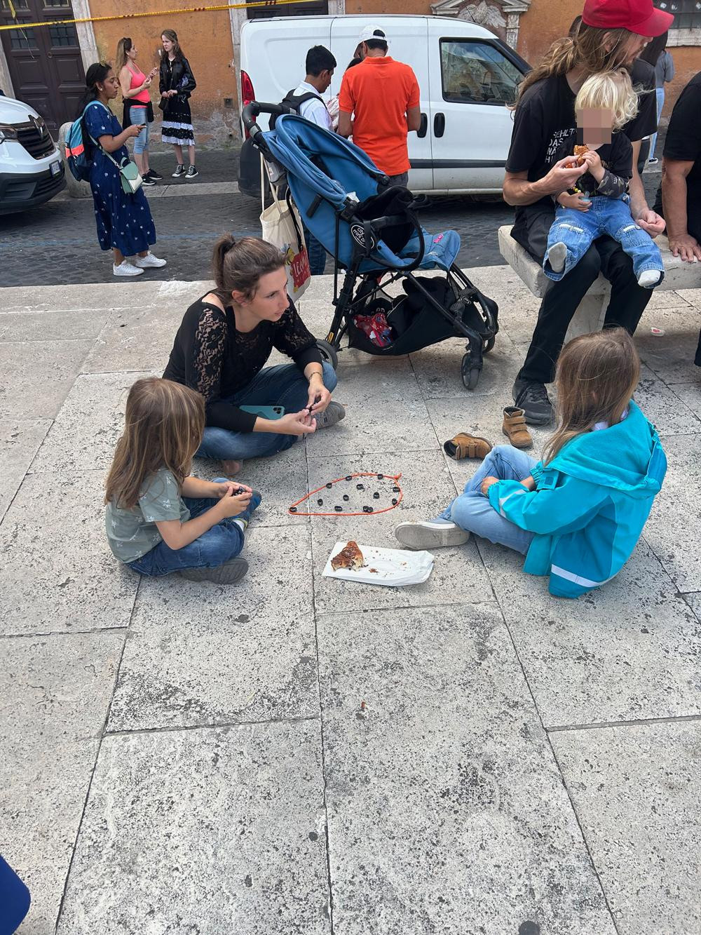 Neki, poput francuske obitelji, sjeli su na ulicu i igraju neku nepoznatu igru. Majka igra s kćerima, otac čuva dječaka
