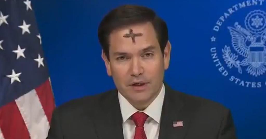 Američki državni tajnik Marco Rubio u srijedu se, na Pepelnicu kojom kršćani obilježavaju početak korizme, na intervjuu pojavio sa znakom križa na čelu.