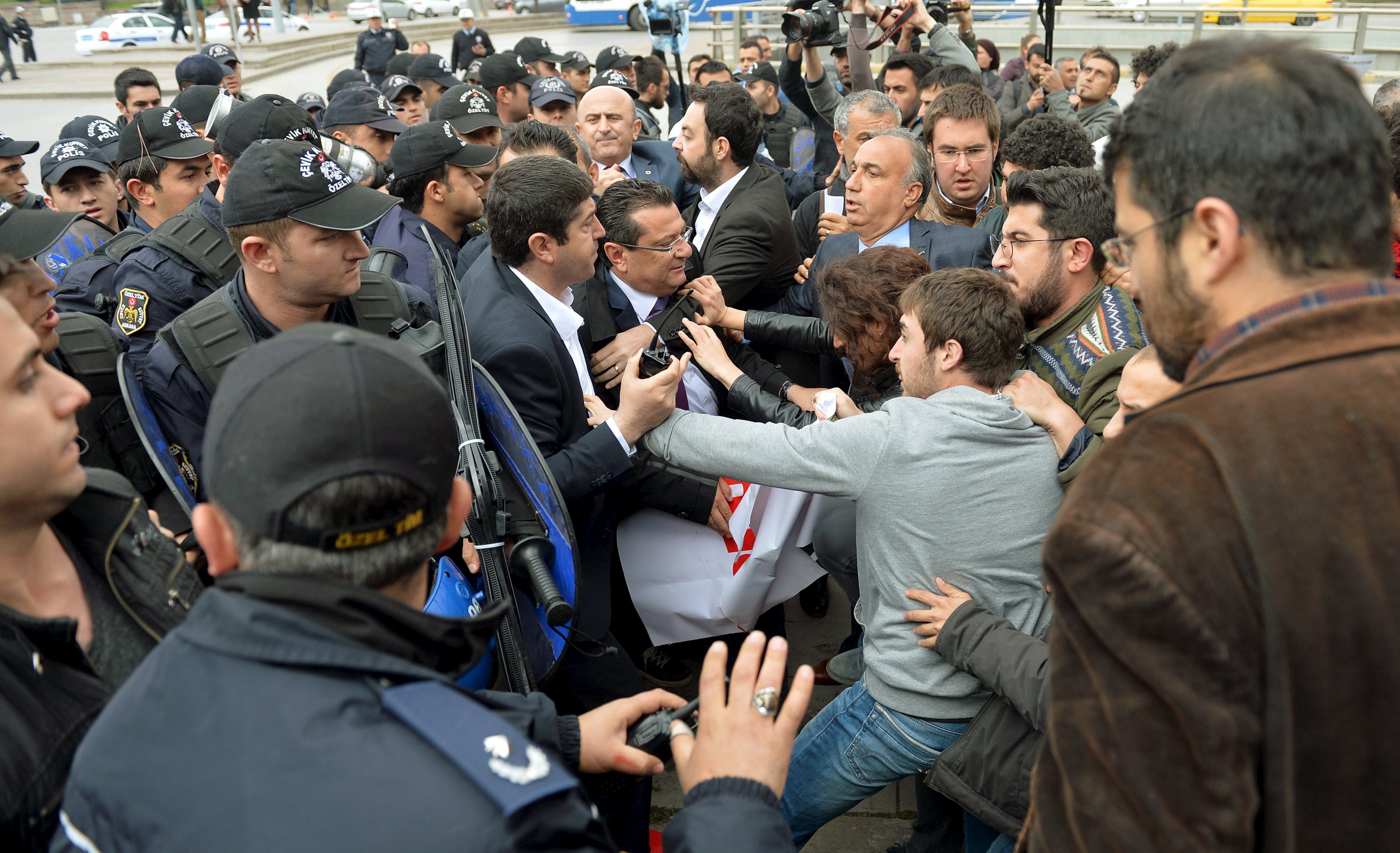 "Turska je sekularna država i takva će i ostati", skandiralo je stotinjak prosvjednika okupljenih pred ulazom u zgradu parlamenta, prije nego što ih je policija rastjerala suzavcem, a neki su potom privedeni.