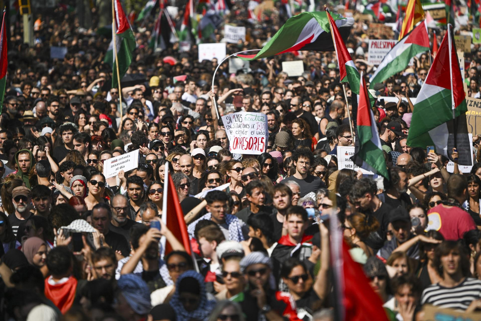 Tisuće ljudi promarširale su u subotu središtem Barcelone u znak potpore Palestini, zahtijevajući prekid rata u Gazi i prekid trgovine oružjem s Izraelom.