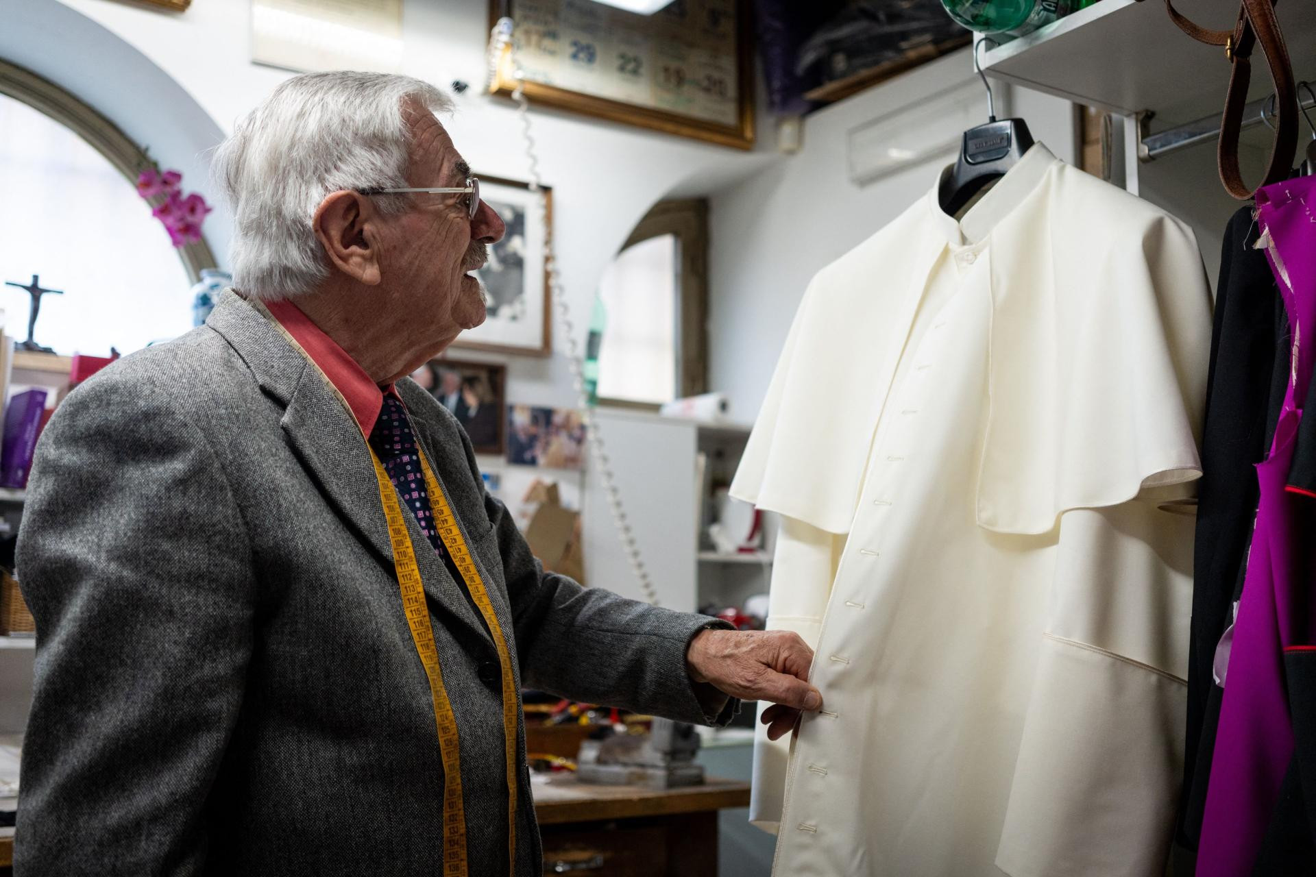 Raniero Mancinelli je krojač koji je šivao odjeću za posljednja tri pape, no u zadnje vrijeme, zbog silnog interesa medija za njegovu povijesnu trgovinu u Borgo Piu, jedva da i ima vremena uzeti škare u ruke.