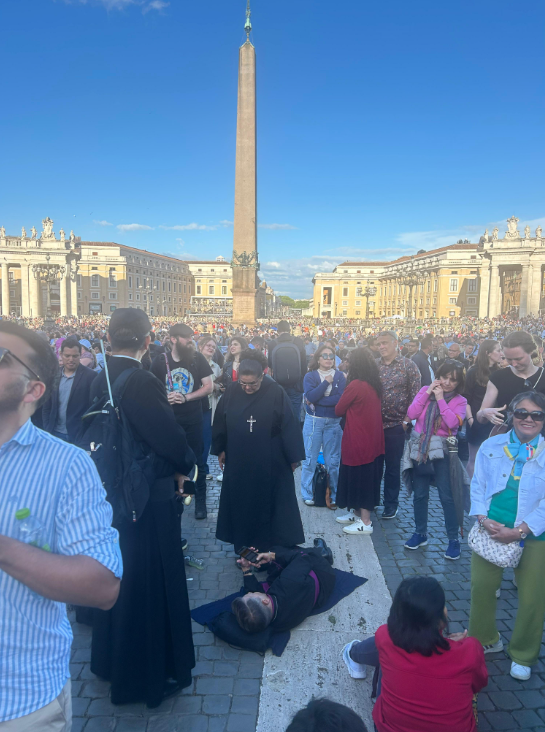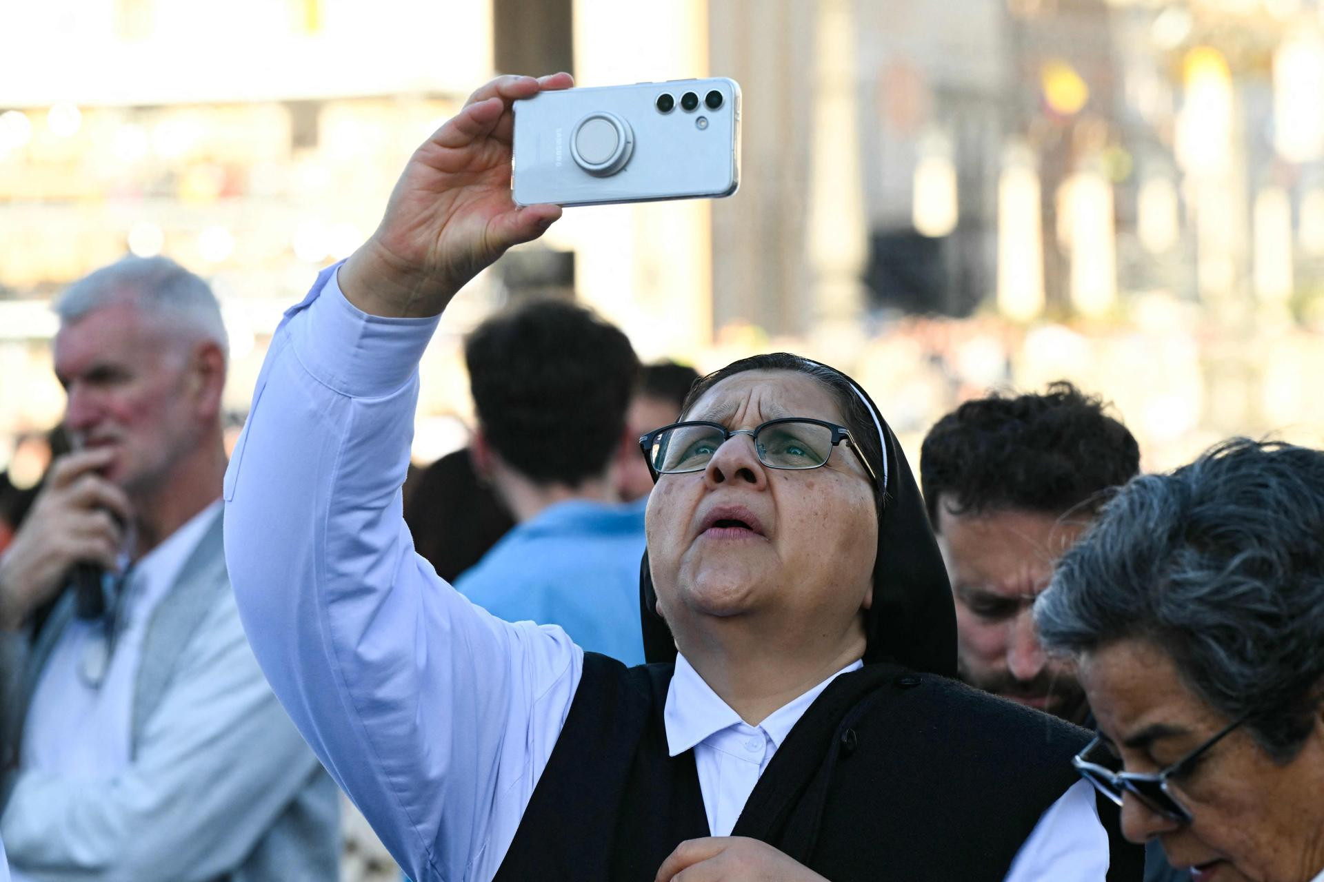 18.23 Prema procjeni policije, na Trgu sv. Petra sada je oko deset tisuća ljudi. Evo nekoliko detalja iz sunčanog Vatikana.