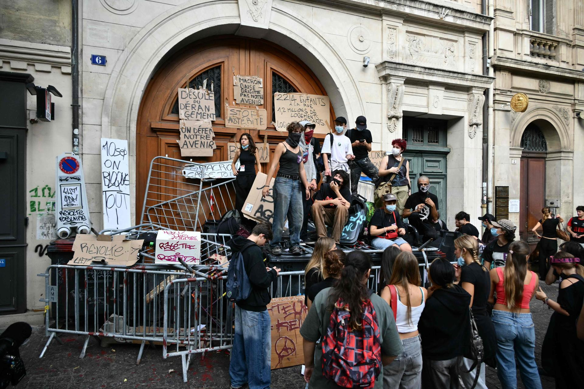Oko stotinu mladih, neki s kapuljačama, okupilo se ispred Lavoisiera rano ujutro. ‘Blokiramo jer nam je stalo do našeg mentalnog zdravlja‘, ‘Da bi napunili svoje blagajne, Bayrou nam kida džepove‘, pisalo je na transparentima.