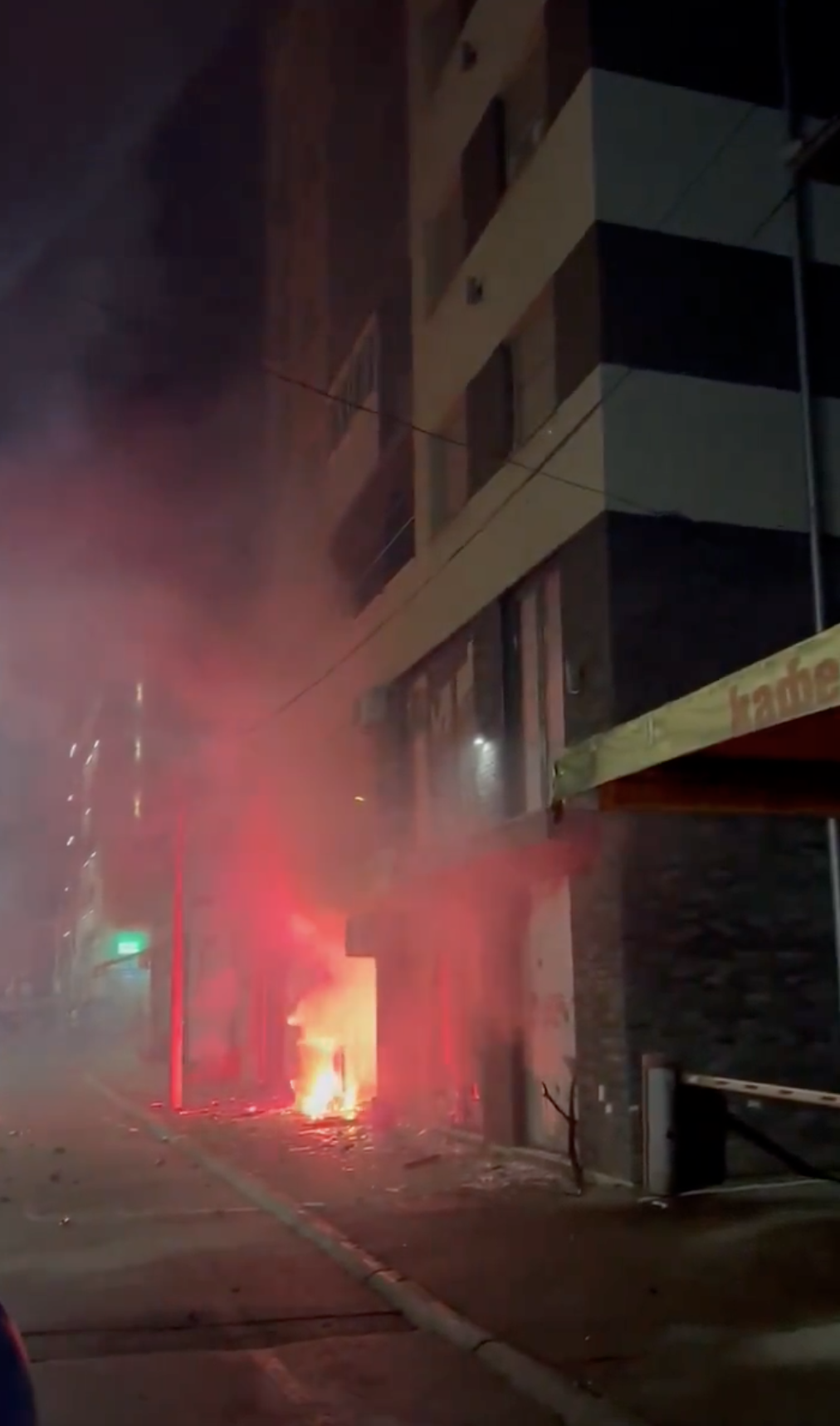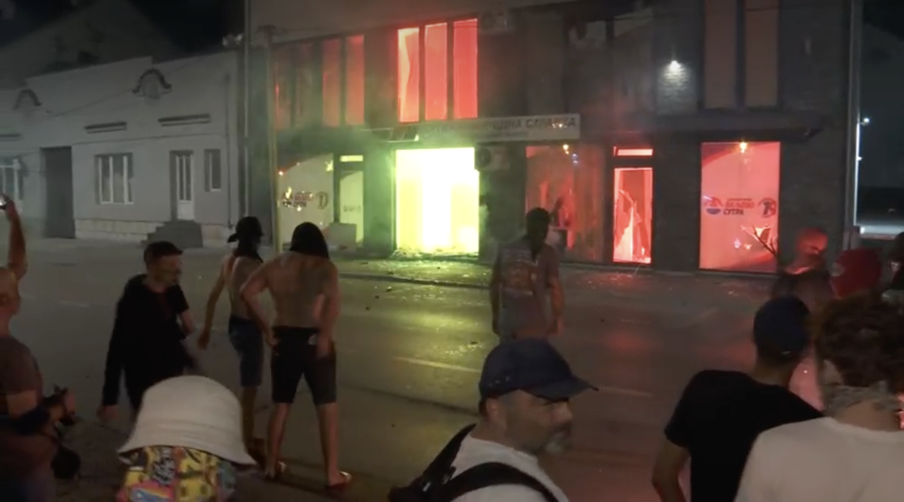 Bačene su baklje i pirotehnika što je izazvalo manji požar u prostorijama SNS-a, pa su nakratko morali intervenirati vatrogasci.