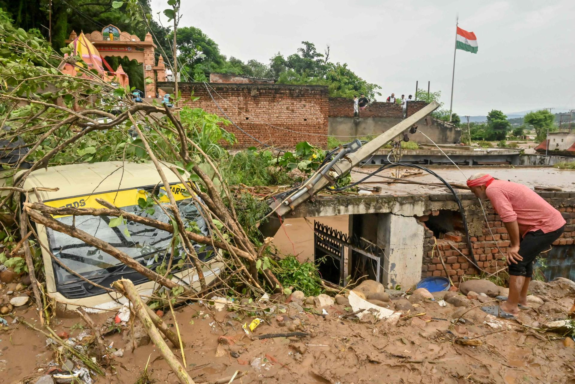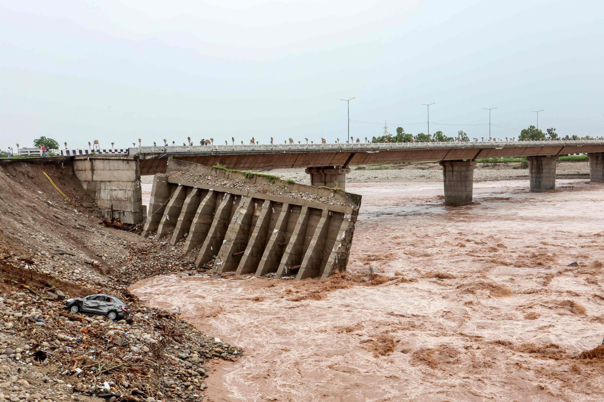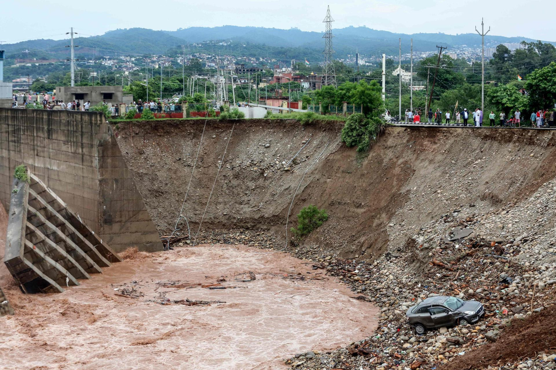 Brana Madhopur na rijeci Tavi djelomično se urušila zbog jake kiše u noći na srijedu. Bujica je odnijela nekoliko vozila s brane, no nema izvješća o žrtvama.
