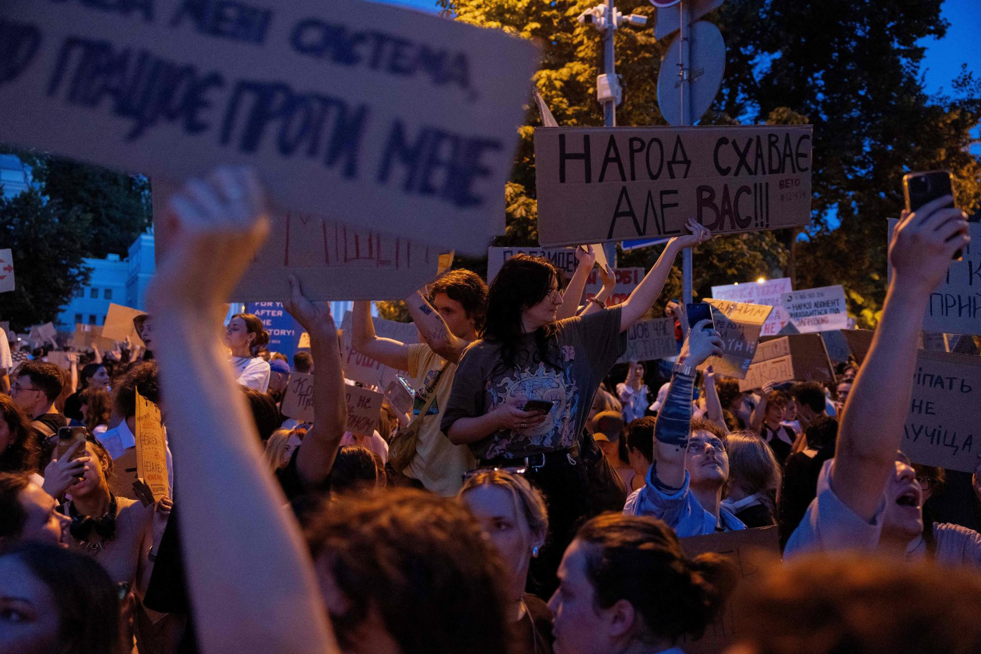 Usvajanje zakona odmah je izazvalo velike prosvjede u nekoliko ukrajinskih gradova, najveće od početka ruske invazije u veljači 2022.