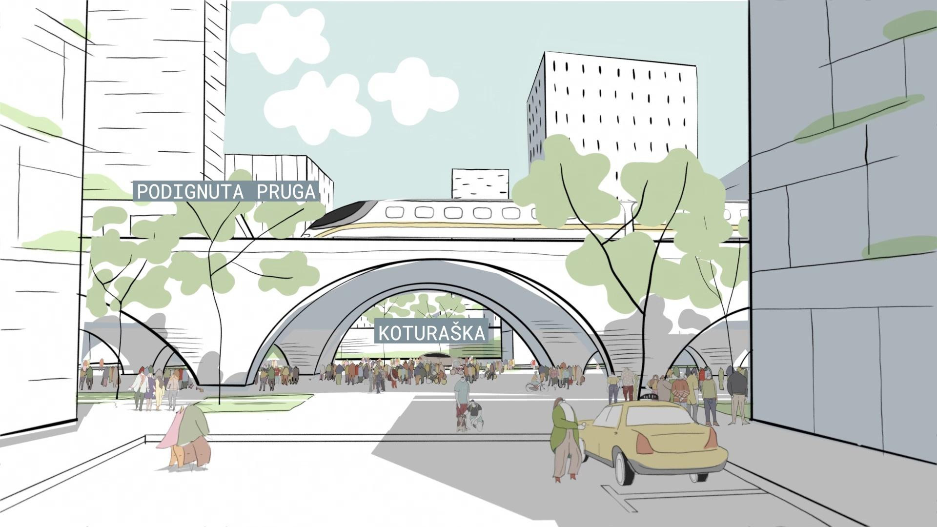 U sredini je Glavni kolodvor, a parkovi su iza njega. Ovo je AI prikaz prostora na kojem bi bio i podzemni novi autobusni kolodvor kod Lisinskog i iza Glavnog