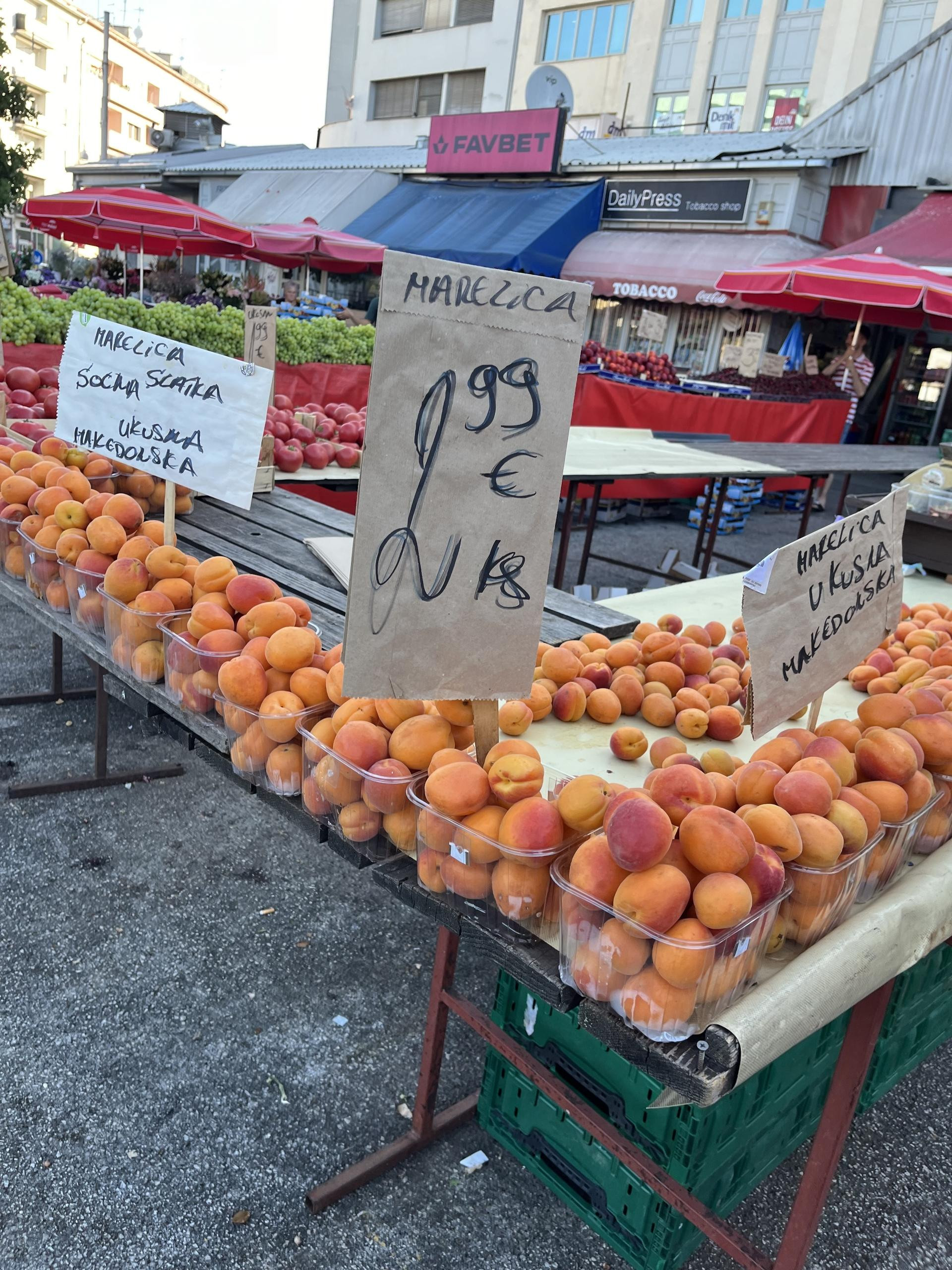 Cijene sljedećih namirnica su nešto izjednačenije. Marelice se na nekim zagrebačkim štandovima jeftinije nego u milanskim, ali ovisi od koga kupujete. Najniža cijena koju smo pronašli je 3 eura po kilogramu, ali se mogu naći i za 4, ali i za 5 eura na Kvatriću. Na tržnici Papiniano marelice koštaju 3,5 eura.