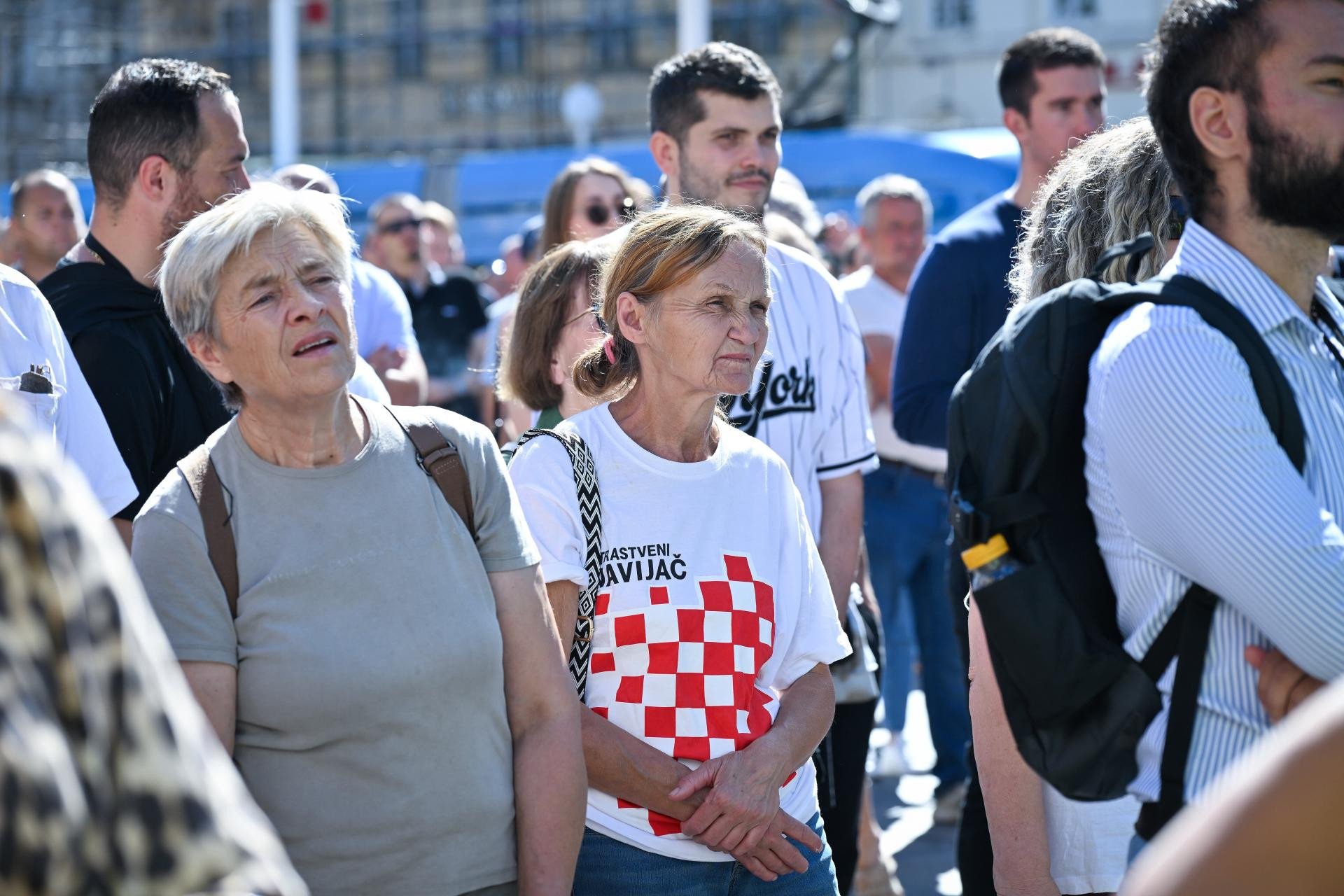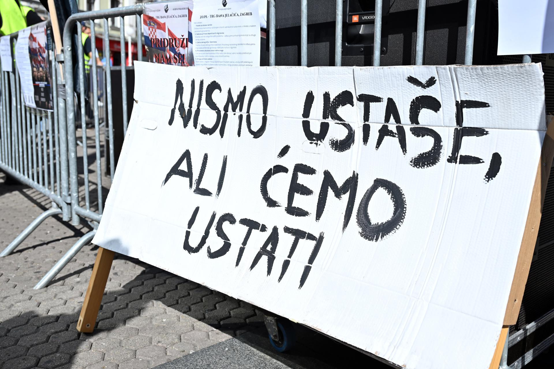 Trgom se prolomio i pozdrav "Za dom spremni", a stranke Možemo! i HDZ bile su obasute salvom zvižduka.