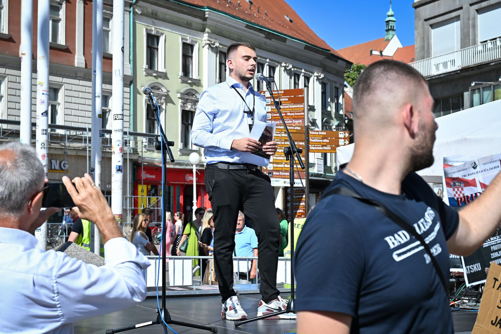- Želim se zahvaliti svima koji su danas došli na prosvjed za spas hrvatske kulture, za zabranu uvoza stranih radnika, za regulaciju ulaska stranih radnika, zato što je ovo naša domovina.