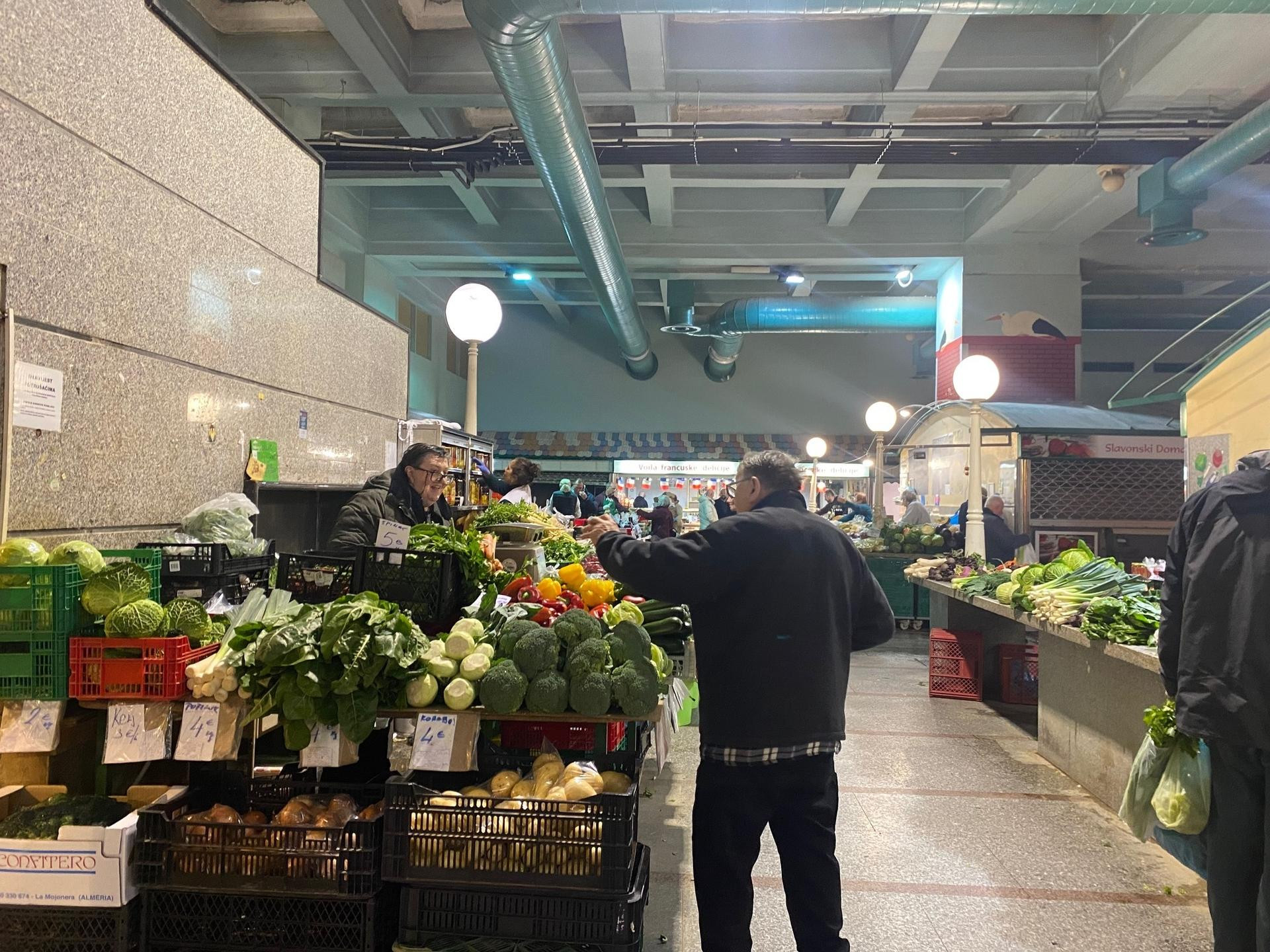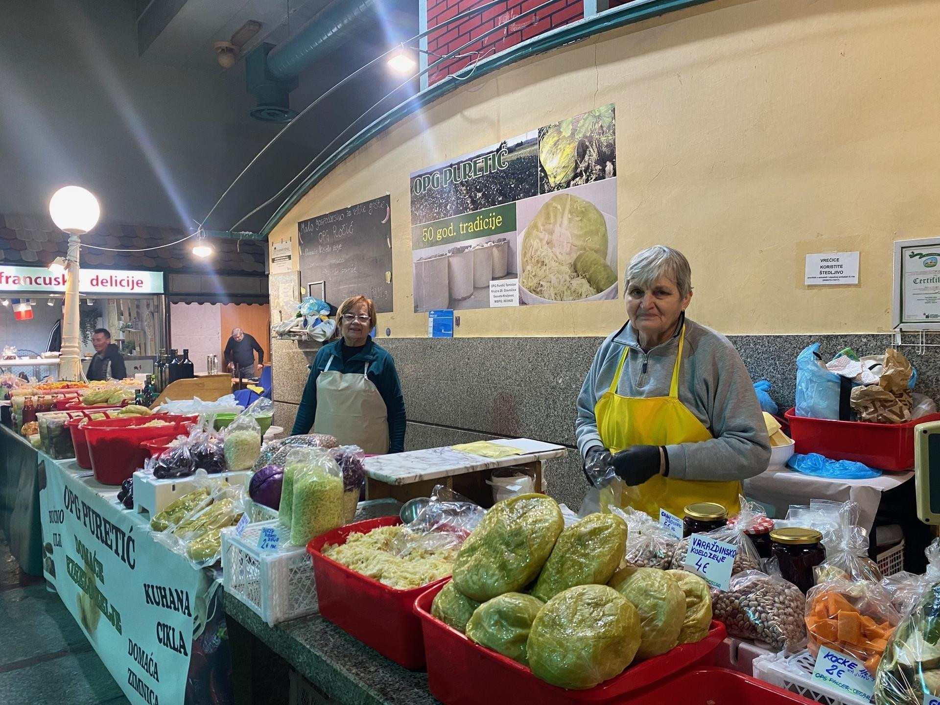 Nakon šetnje unutarnjim dijelom odlučili smo provjeriti kakvo je stanje vani, na vanjskim štandovima. – To nam je sada taman. Sad smo opet svi blizu i čekamo da krenu blagdanske gužve, govori nam prodavačica povrća, kojoj se štand nalazi par metara dalje od ulaza u tržnicu, u Ulici Pod zidom.