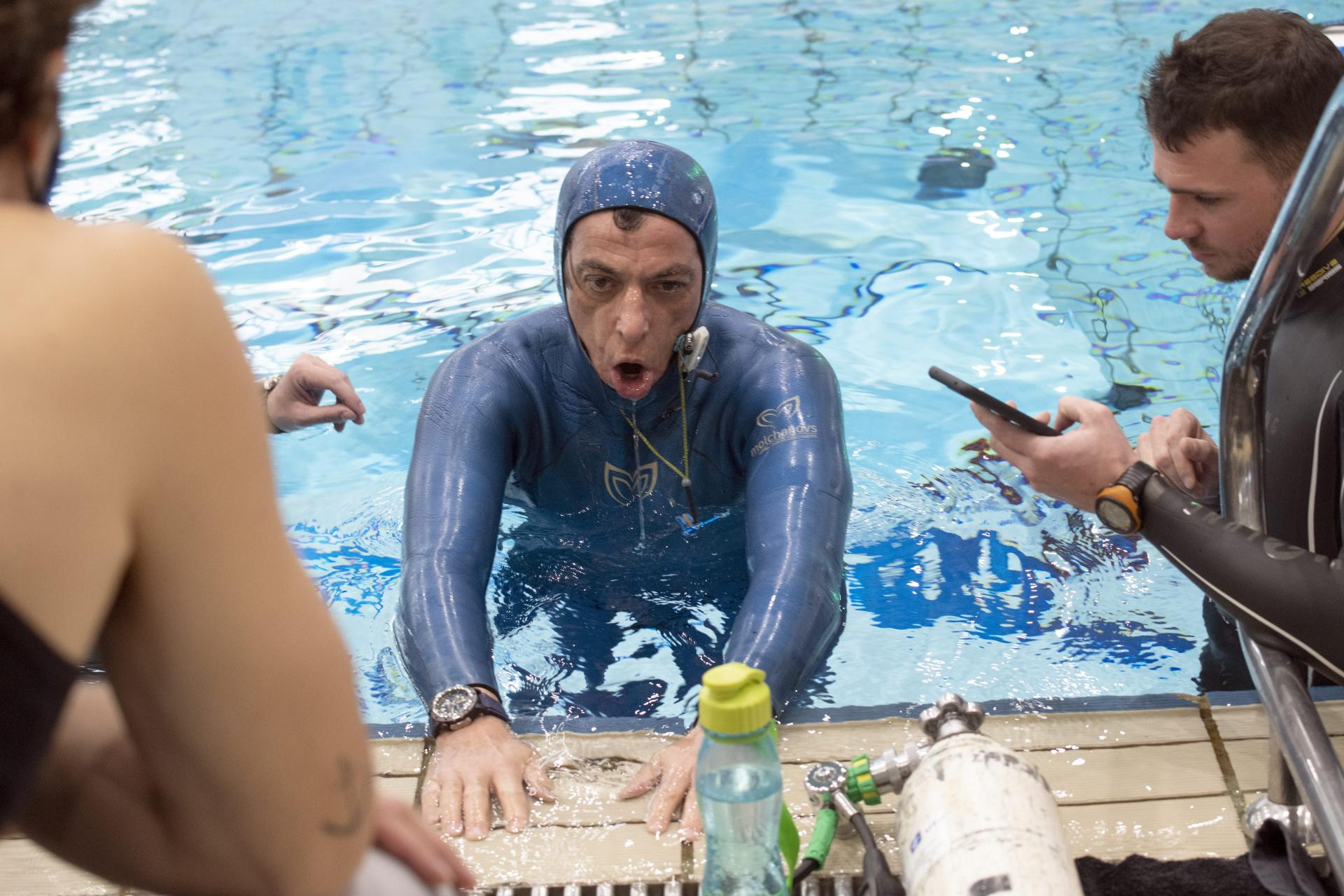- Je li uopće živ?, pitali su se drugi natjecatelji - njih petero koji su ga trebali zajedno pobijediti u držanju daha pod vodom kako bi osvojili poznati talijanski automobil.