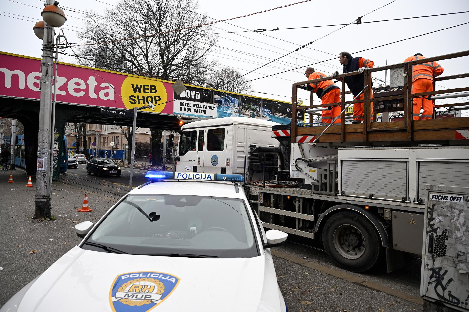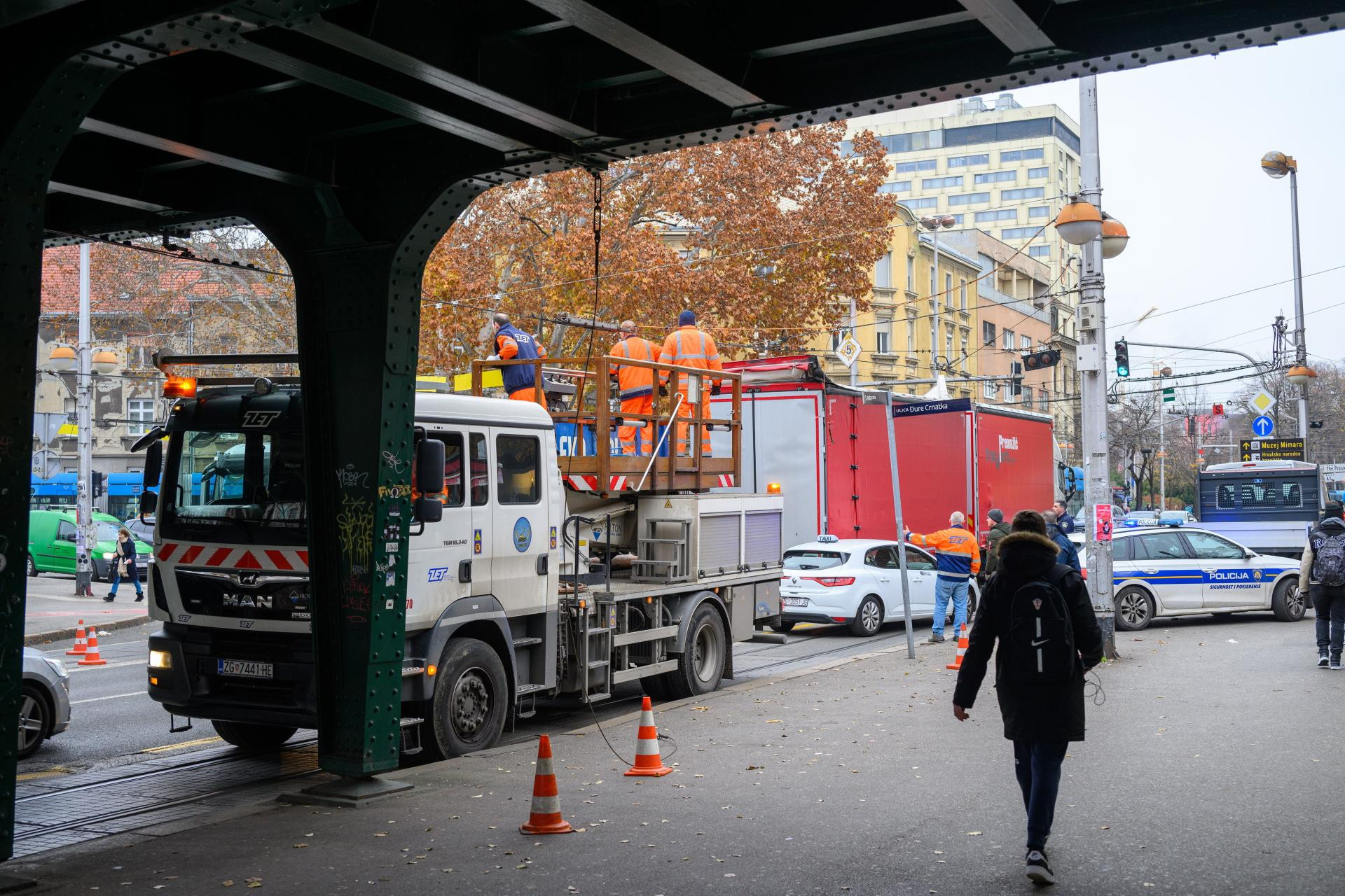 Na terenu su policija i komunalne službe, koje pokušavaju osloboditi kamion zapleten u žice tramvajske mreže. Još nije poznato koliko će trajati sanacija i normalizacija prometa.