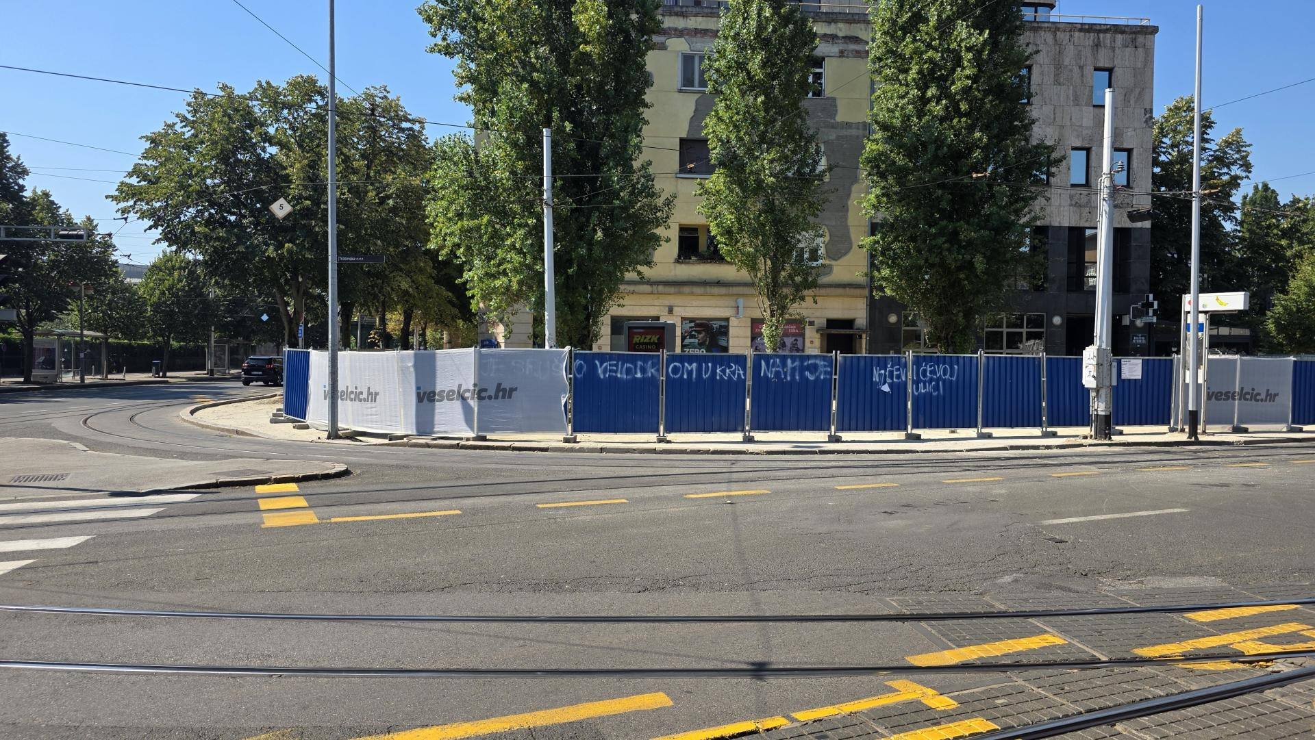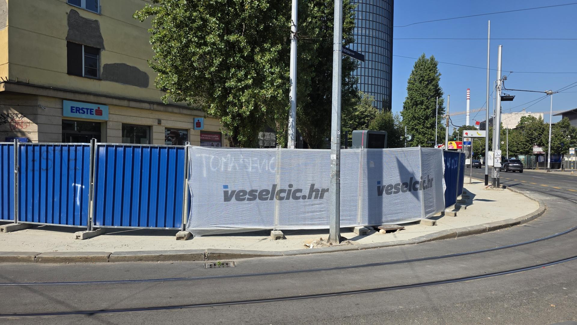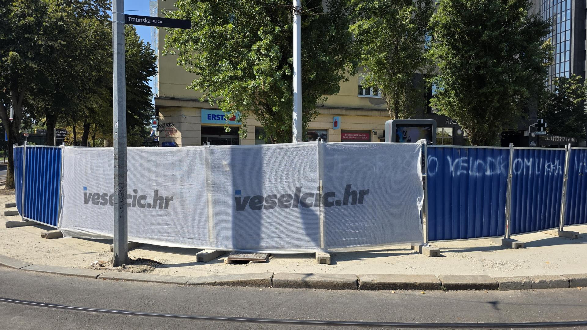 Izvođač radova Veselčić d.o.o. u proteklih je nekoliko dana dvaput mijenjao raspored tih ograda, a pri posljednjem razmještanju ispisane dijelove dodatno je prekrio bijelim platnom s reklamom tvrtke.