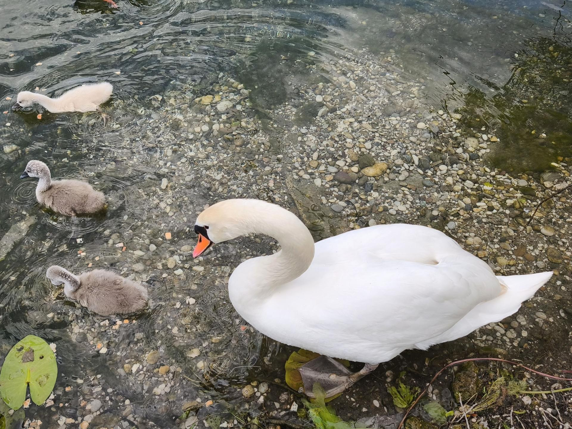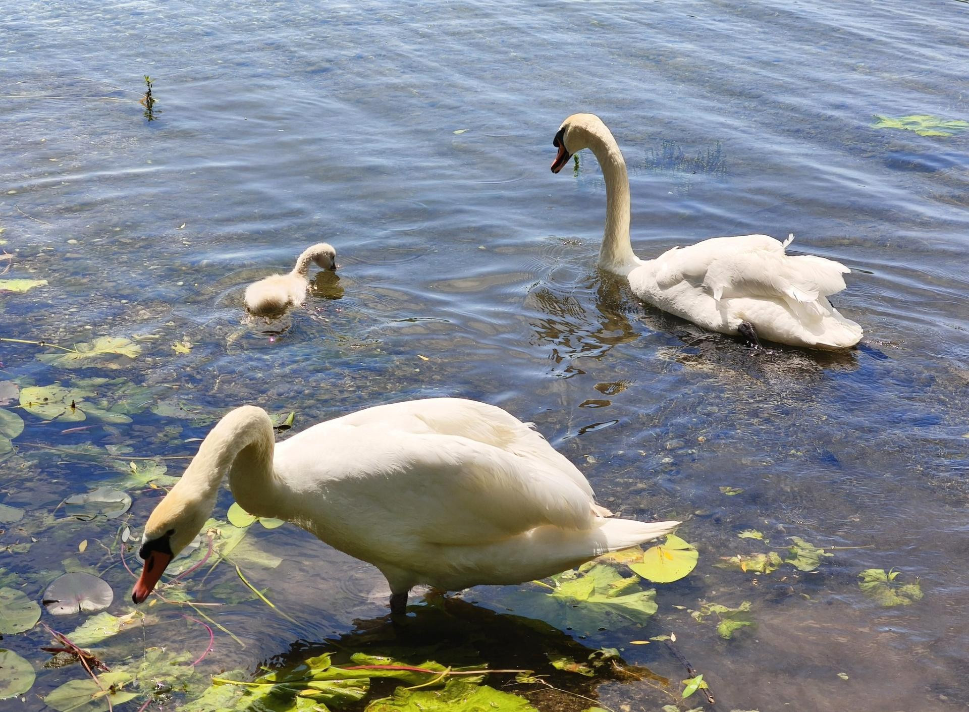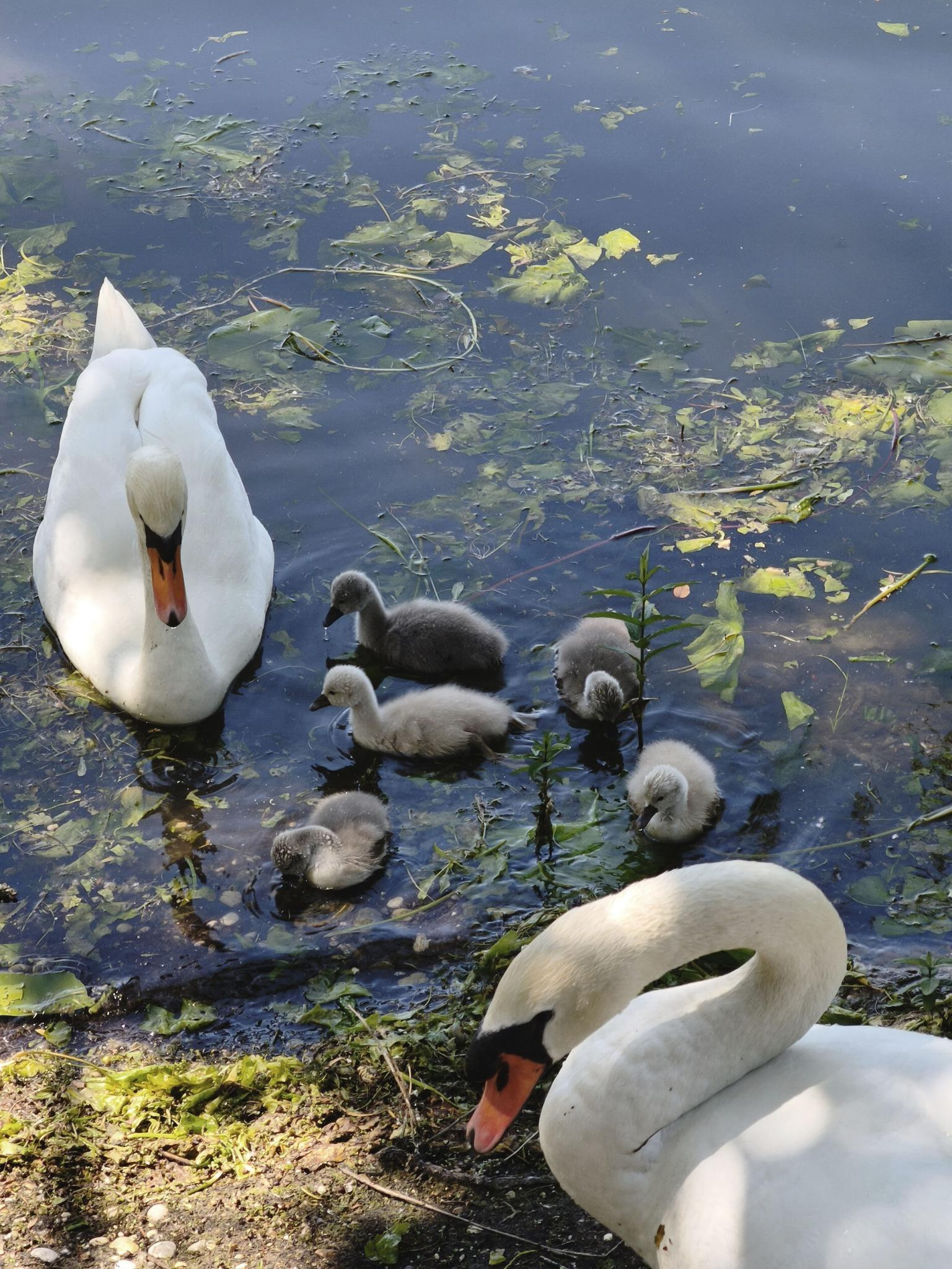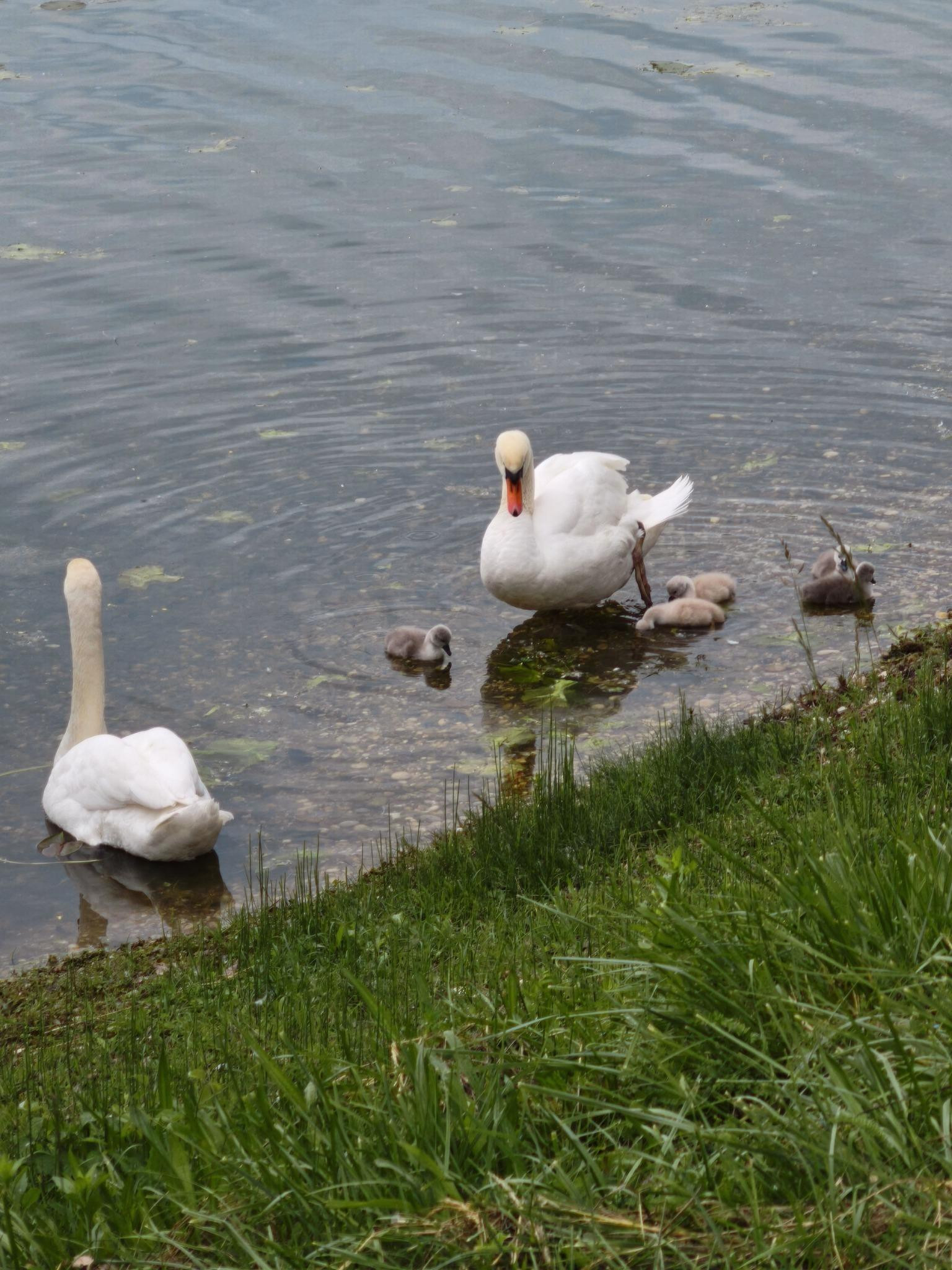 Snimljeno 9.5. - Labud, labudica i petero mladih u plićaku jezera nedaleko gnijezda