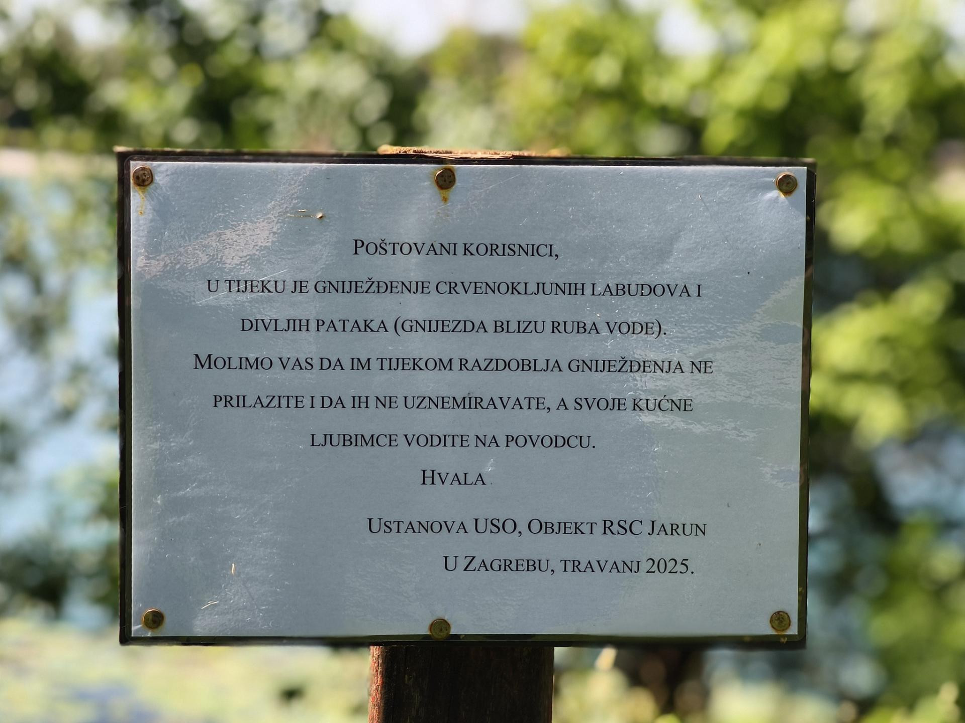 Unatoč jasno istaknutim upozorenjima o razdoblju gniježđenja, labudovi na Jarunu ostaju bez potomstva