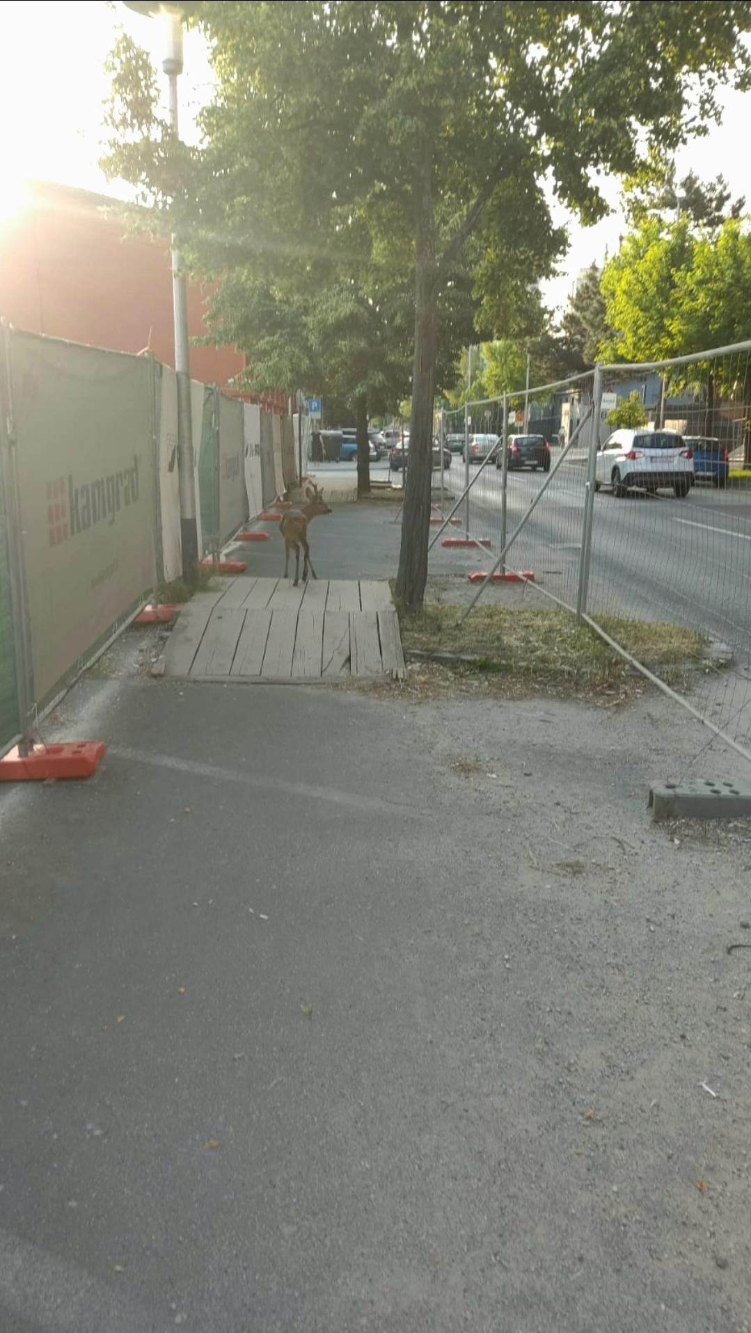 Neobični prizori iz šireg centra Zagreba danas; građani su snimili mladog srnjaka između ograde gradilišta i prometne ulice. Uplašena životinja, u očitoj potrazi za izlazom, zalutala je na križanje Cankareve ulice i Prilaza baruna Filipovića.