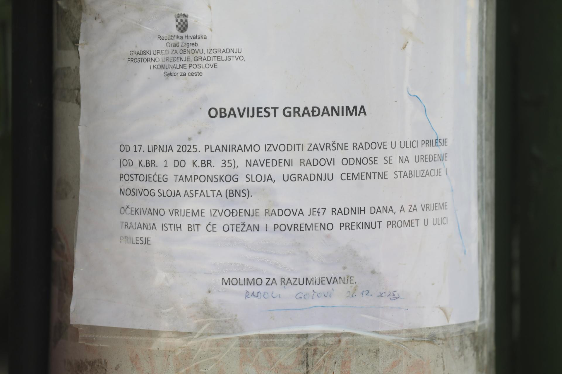Prerezan optički kabel, zatrpan plinomjer, presječene strujne žice, sedam poplavljenih kuća i jedan razbijeni prozor. Tako otprilike izgleda rekonstrukcija vodoopskrbe i javne kanalizacije u Prilesju, strmoj ulici poviše Maksimira, kako nam govore stanari. Brine ih najviše što se rokovi produljuju, a kraj se ne nazire.